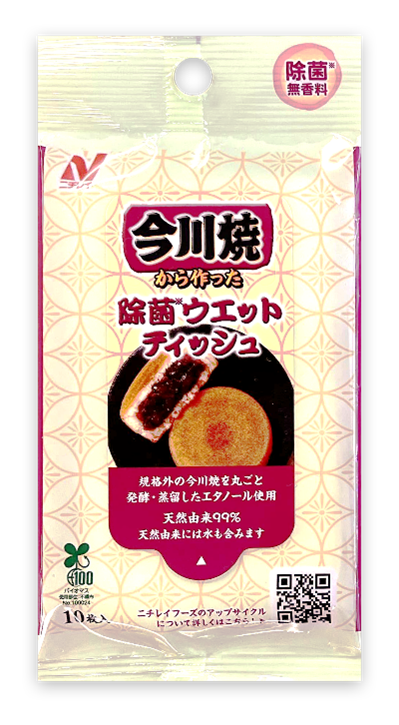アップサイクル商品の第二弾!ニチレイ『 今川焼(あずきあん) 』 の 規格外品を丸ごと使用した『「今川焼」から作った除菌 ウエットティッシュ 』 を開発