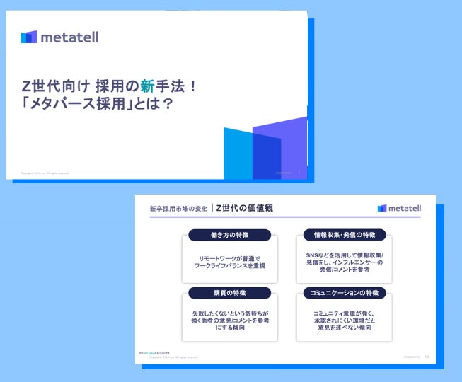 株式会社Urth(本社:東京都新宿区、代表取締役:田中大貴、以下“当社”)は2024年11月7日(木)に『Z世代向け 採用の新手法!「メタバース採用」とは?』と題したホワイトペーパーを公開いたしました。