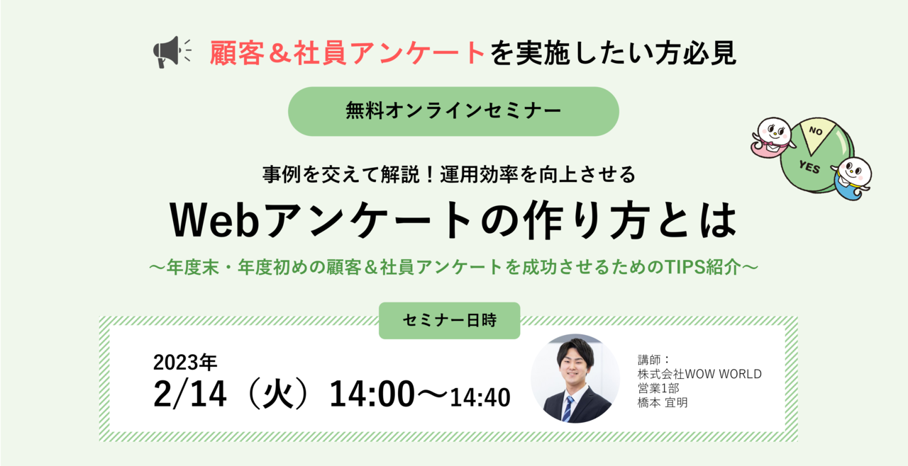 無料オンラインセミナー「事例を交えて解説!運用効率を向上させるWebアンケートの作り方とは」2023年2月14日(火)開催のお知らせ