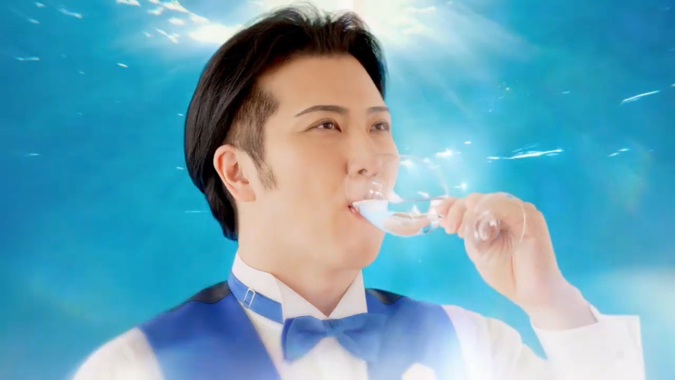 上品なワインソムリエのように、水が入ったグラスをもつ「水ソムリエ マツヤ」が、突然おうちに出現!各商品のお水の特徴やおいしさをかっこよくコミカルに伝えていきます。女性に強く勧めながらも最後には自分で水を飲んでしまう楽しい展開のCMをぜひご覧ください。さらに「おいしい水の宅配便」のCMでは静岡県内では定番のCMソングを歌っていただいています!