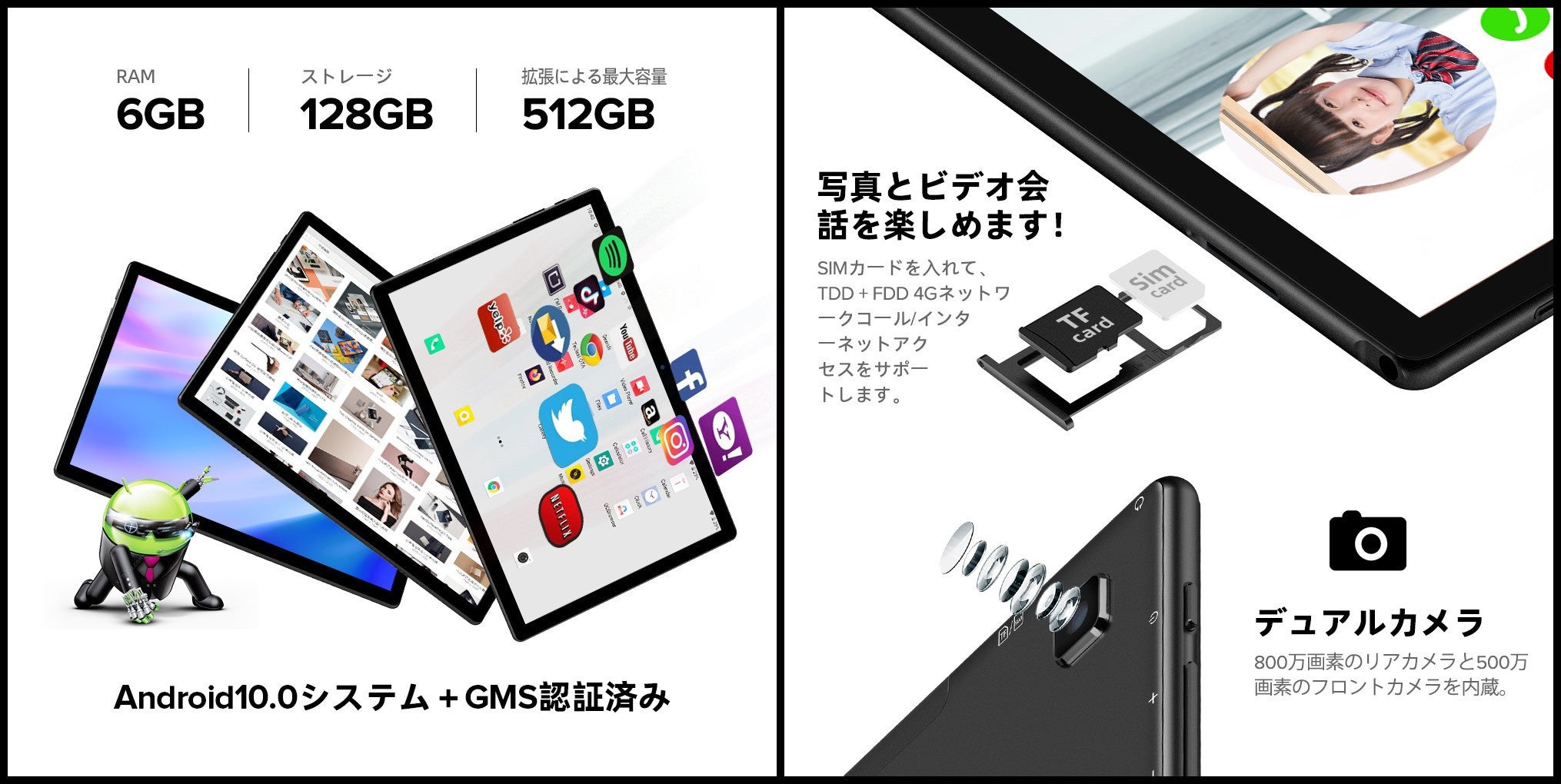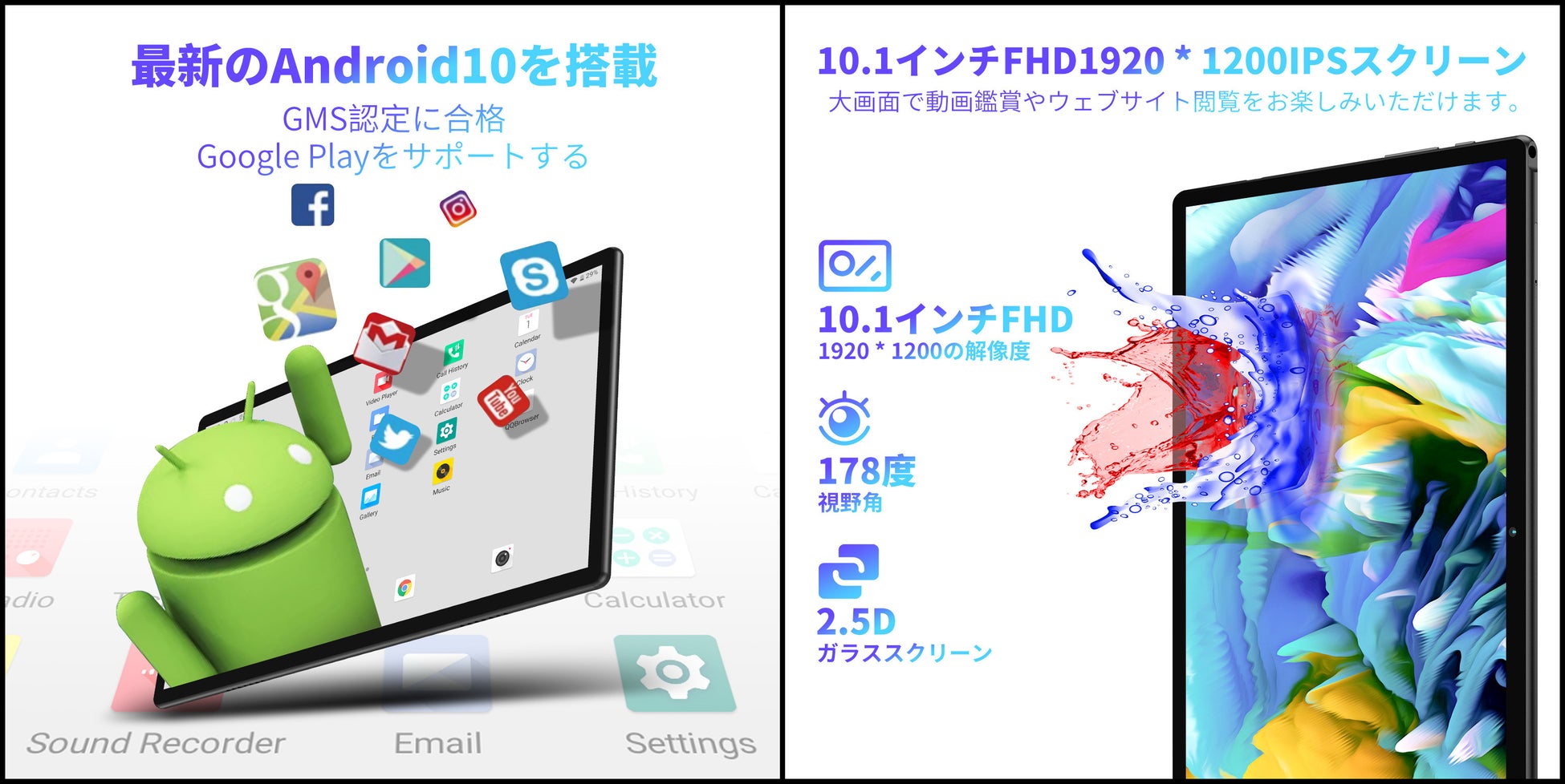 10.1インチの1920*1200高解像度IPSディスプレイを搭載。HD画質なので、きめ細かな描写が可能です。広い視野角のIPSパネルにより、写真やビデオなどを斜めの角度からも美しい映像で楽しめます満足できます。オンラン授業に適当になります。9.3mmの薄さ、ポータブルなオールメタルデザイン。より軽く、家中またはどこへでも持ち歩けるモバイルなタブレットです。