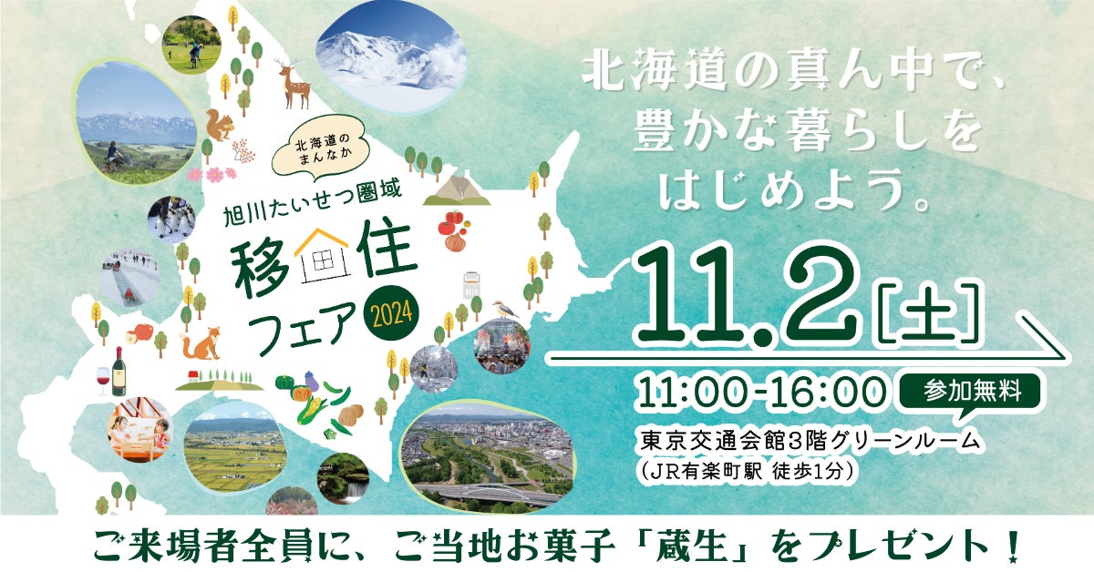 北海道の移住イベント「旭川たいせつ圏域 移住フェア2024~豊かな暮らし、はじめよう~」を11月2日(土)東京・有楽町にて開催します。