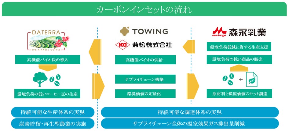 株式会社TOWING、兼松株式会社、森永乳業株式会社は共同で、コーヒー2050年問題に対する施策およびサプライチェーン全体の温室効果ガス排出量削減策の一つとして、ブラジルのコーヒー生産者であるダテーラ農園※1の育苗地を対象に、TOWINGの高機能バイオ炭「宙炭(そらたん)※2」を施用する実証実験を開始しました。