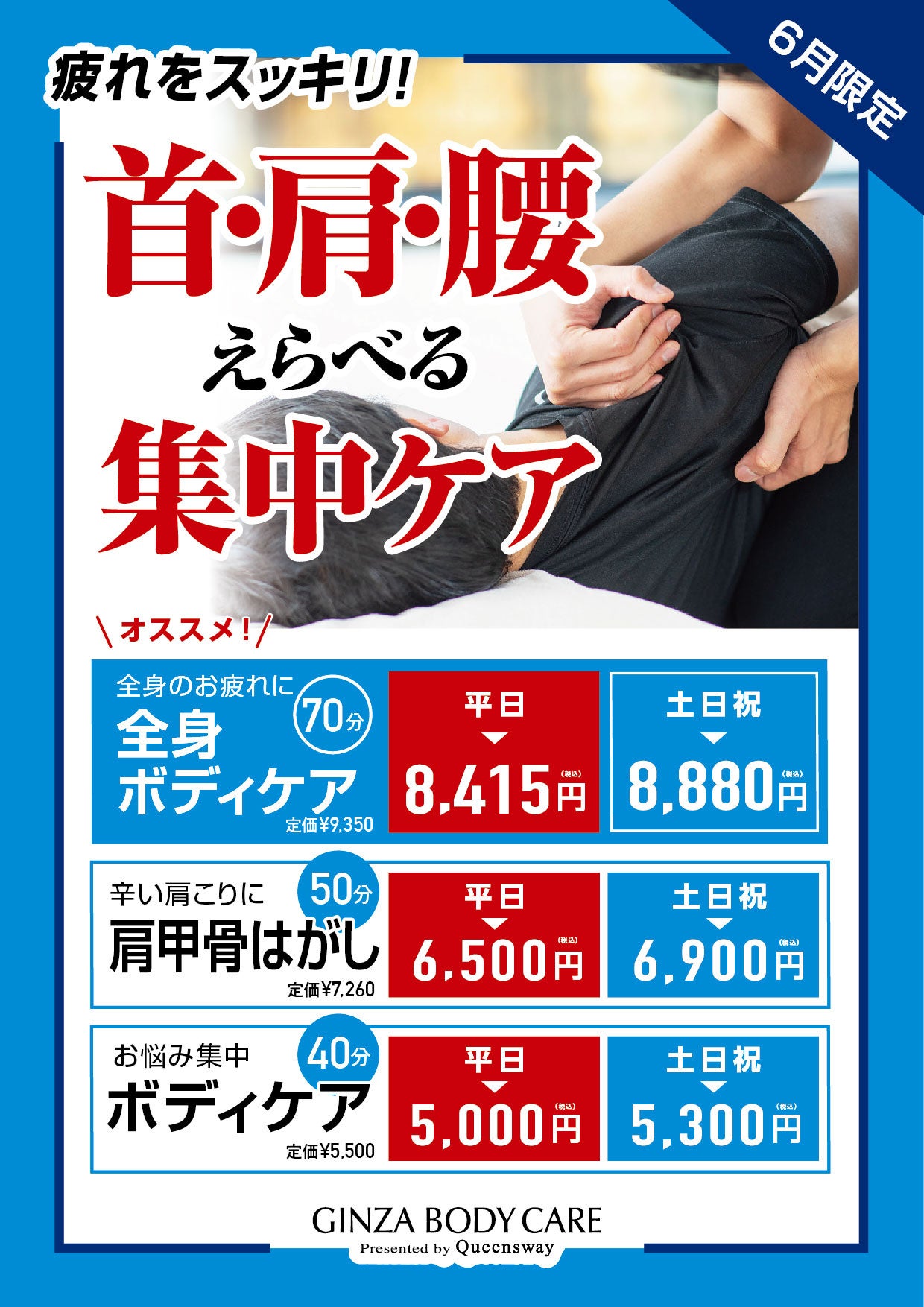 ~疲れをスッキリ!首・肩・腰 選べる集中ケア~
