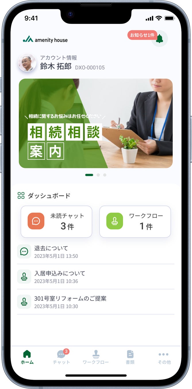 さらに、チャット機能や一斉配信により、これまで見落としがちだった情報や提案もタイムリーに届き、空室対策・修繕提案など、より質の高いサポートが可能になりました。