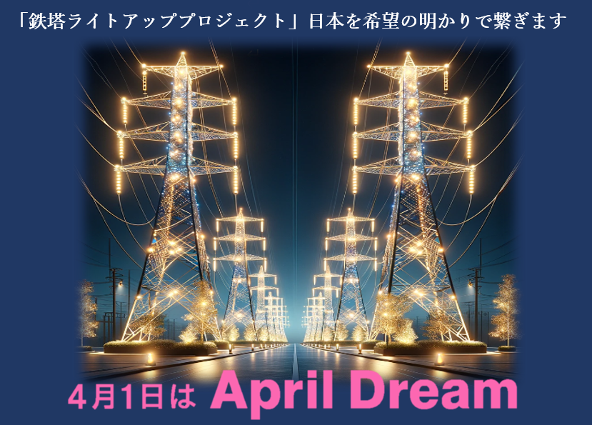 日本各地に点在する送電線鉄塔をライトアップし、日本中に明かりと幸せな笑顔を灯し、全ての人々に心躍る瞬間を届けます。当社は、4月1日に夢を発信する日にしようとするApril Dreamに賛同しています。このプレスリリースは株式会社ETSホールディングスの夢です。