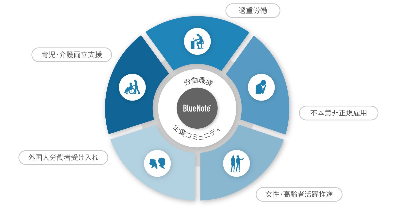 BlueNote™は、こうした労働環境を取り巻くさまざまな課題と向き合うメディアとして、働くすべての人々が活き活きと活躍できる、持続可能な働き方の実現に向けて有益な情報を発信してまいります。