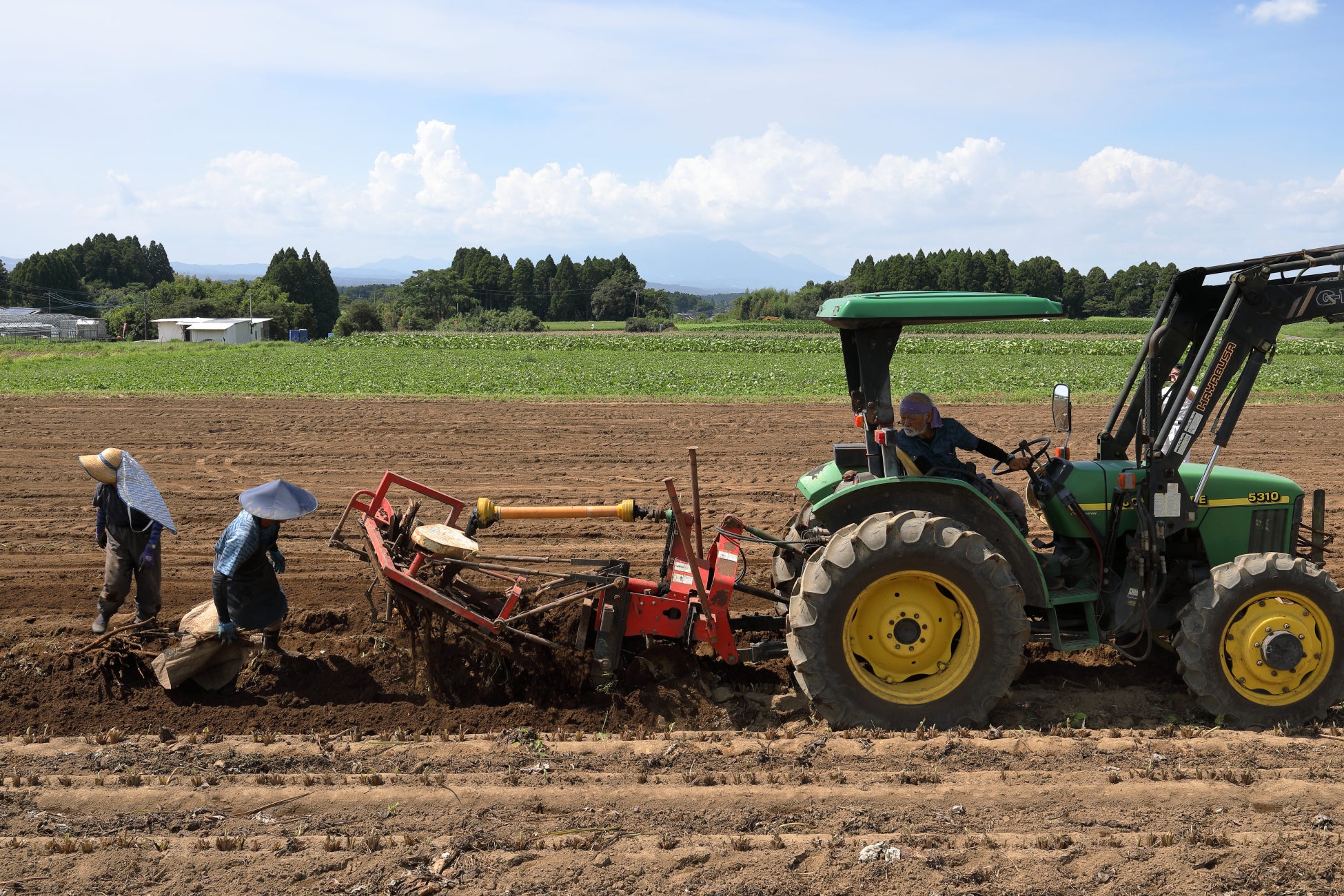 全国へ急速に広がっているサツマイモ基腐病。南九州の契約農家さんの中でも発⽣が確認されています。無病健全苗を使⽤したり、早期の掘り取りを⾏うなど、これまでと違う対応が求められており、農家さんにも協⼒して頂き、感染した⽣芋が⼊荷されないように取り組んでいます。また、これからも良いサツマイモを作っていけるように、「⼤地づくり」の取り組みも始めています。より⼟を元気にすることを⽬指し、⾃社農場はもちろん、契約農家さんでも、ごぼうや落花⽣・じゃがいもなどの「輪作」を⾏っています。サツマイモではない作物を作ることで、偏った圃場とならないように輪作体系を構築し、それぞれの作物を作る上で必要な作業も、最終的にはサツマイモ栽培につながります。栽培した作物は、芋屋⾦次郎での商品化を⾏い販売しています。