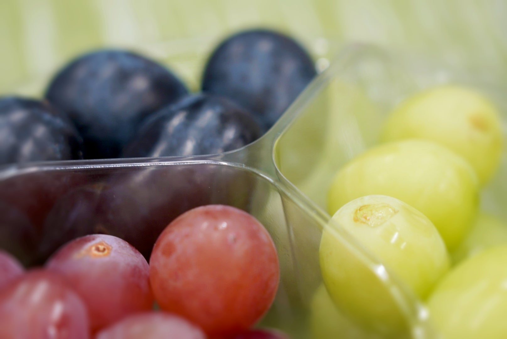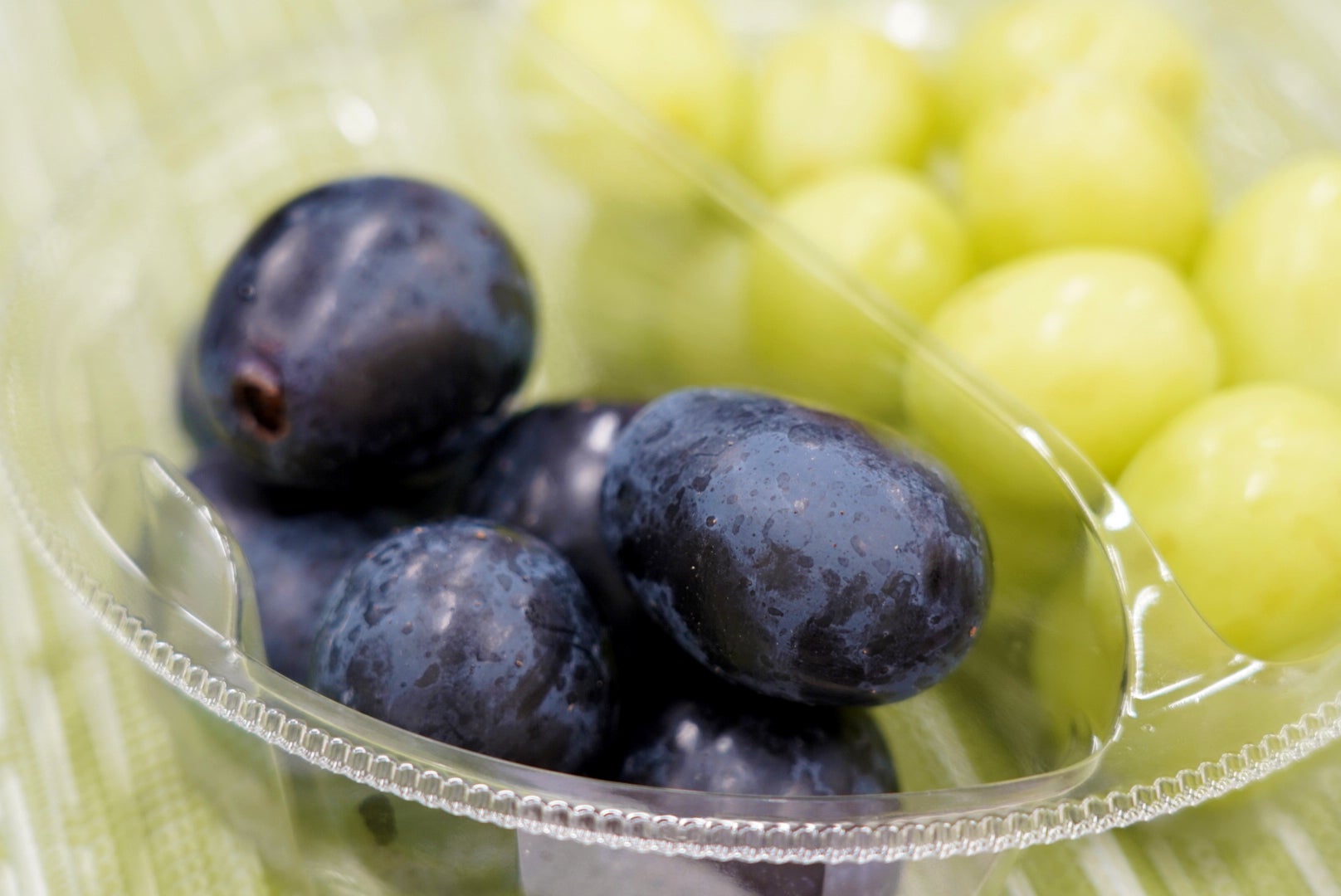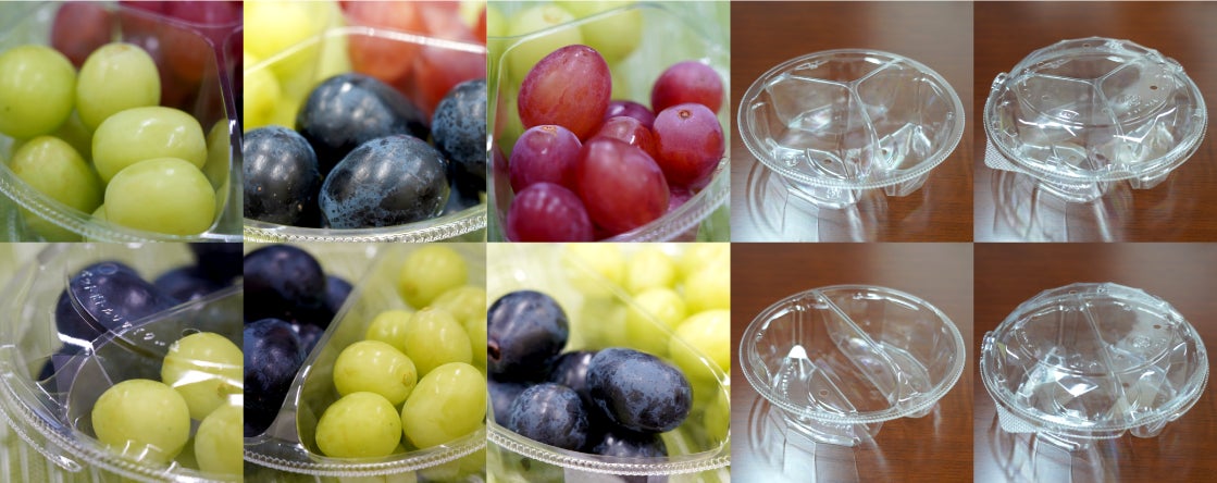 近年、シャインマスカットを筆頭に国産ぶどうの市場が拡大しており、多様な売り方を求められる機会が増えておいる。その中で、透明容器を使用した国産ぶどうの3色アソート(緑・黒・赤)や2色アソート販売に使える仕切付き容器の要望の声は多い。