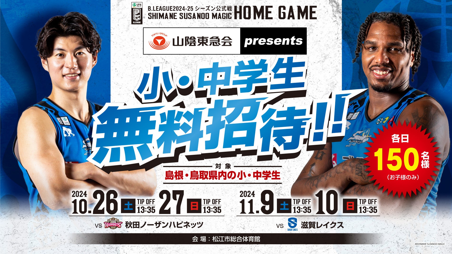 【島根スサノオマジック】山陰東急会 presents「小・中学生無料招待」について