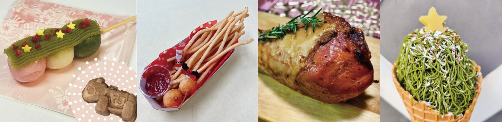 2023年7月20日にオープンした『お花見茶屋』が初のクリスマスを迎えます。あたたかい名物スイーツ「パンダカー®焼き」をぜひご賞味ください。また、各種園内飲食店舗にて、クリスマスオリジナルバージョンのフードを販売します。思わず写真を撮りたくなる商品や、あたたかいフードをお楽しみください。