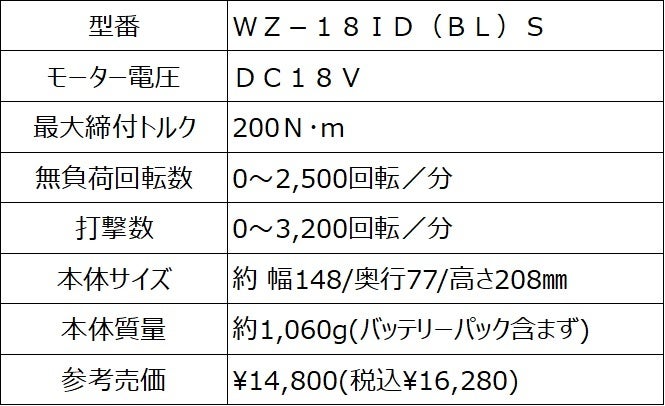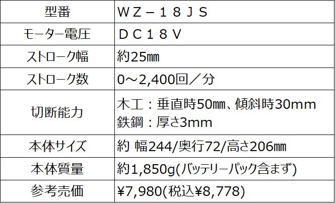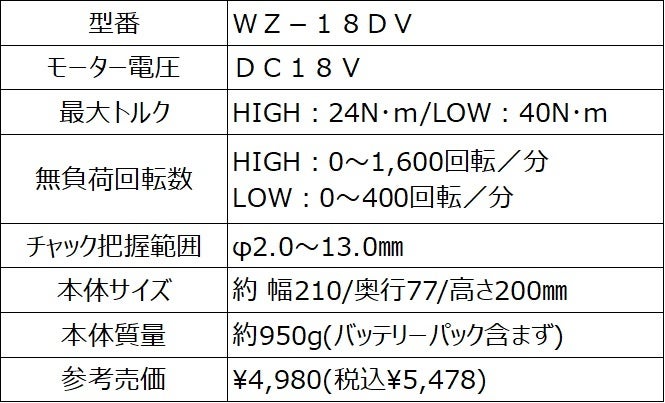「WIZ'Aプレミアム」 18V共通バッテリー電動ツール9アイテムをホームセンタームサシとスーパービバホームで11月16日(水)より販売開始