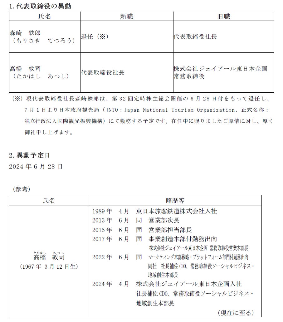 ㈱JR東日本びゅうツーリズム&セールス 代表取締役の異動に関するお知らせ