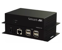 本機は、送信器と受信器のセット製品です。USB信号を送信器から1本のLANケーブルで最長100m延長し、受信器側には4台までのUSB機器を接続できます。ホットプラグ対応のため、送信器とPC、受信器にUSB機器を接続するだけで簡単に使用できます。