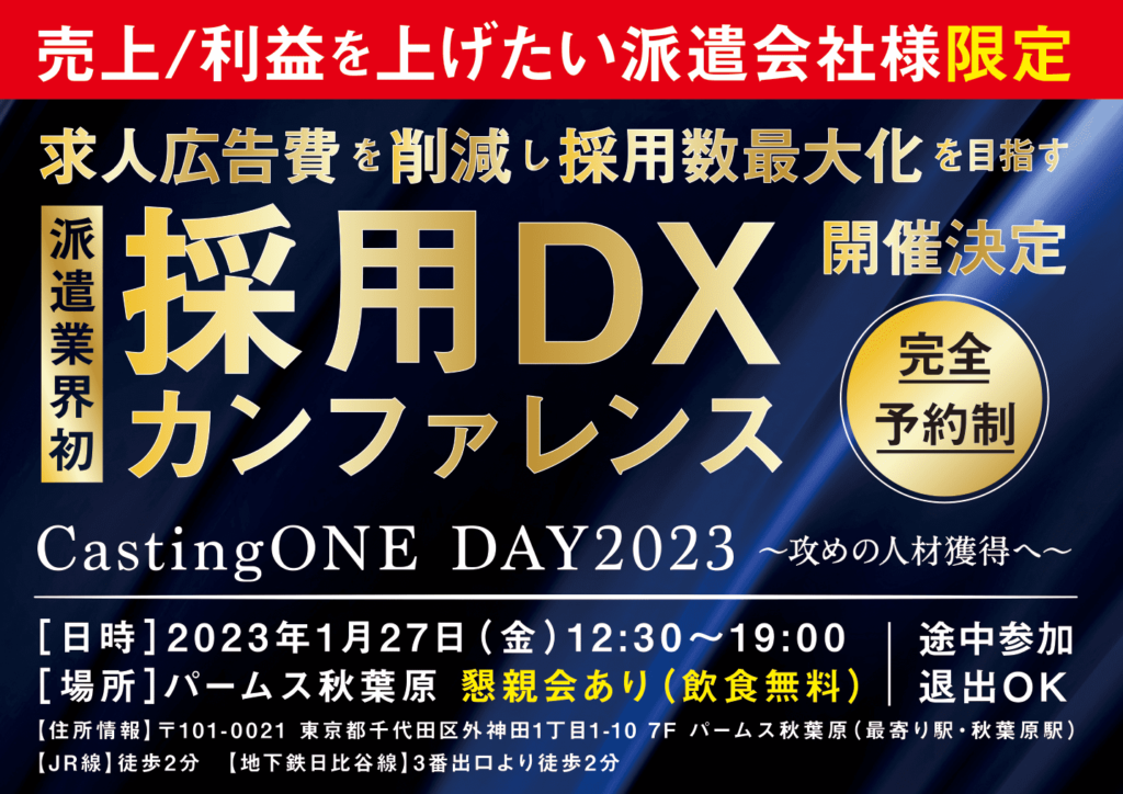 【人材派遣会社限定】オフラインイベント「CastingONE DAY2023」開催