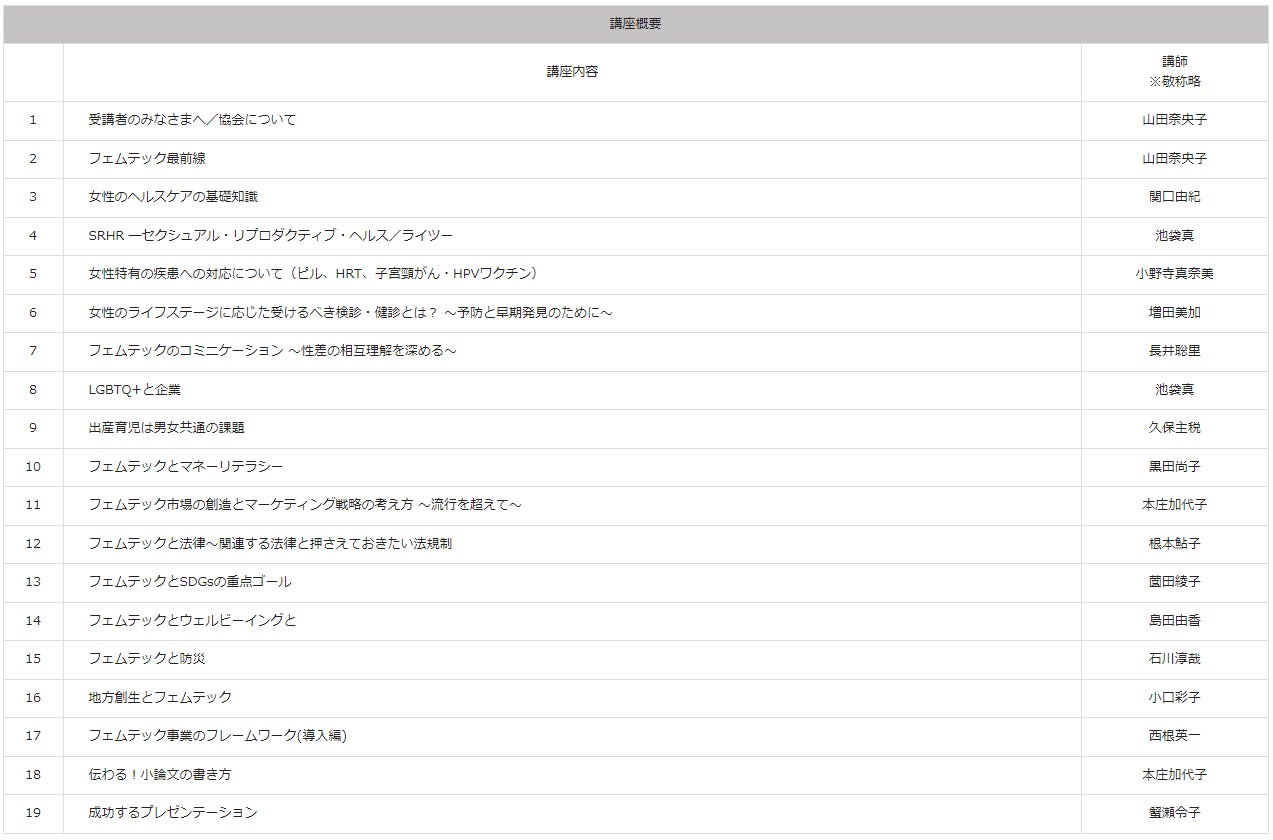 事業内容:フェムテック認定資格試験や研修プログラム等の展開
