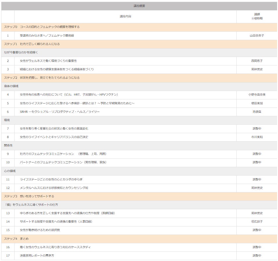 社会や組織に依存するのではなく、個人が自らの意思と責任で生き方を選ぶ時代になり、リーダーには個人の選択を後押しできるよう正しい知識と従業員の個性に寄り添う力が求められるようになったと感じています。 しかし、心身の状態における変化や個人差が激しい女性が、ウェルネスに働くための支援方法を実践的に学べる場はあまりありません。この学びの場を通して、今まで以上に人々が生き生きと自分らしく働くことができる場が増えていくことを願っています。