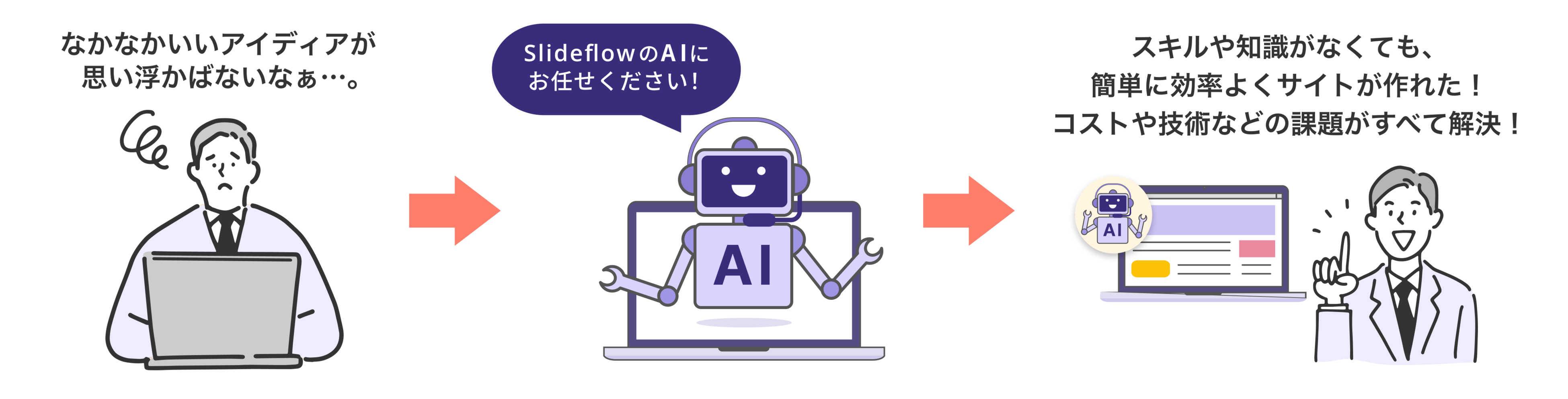 ユーザーはSlideflowプラットフォームの中で、AIと一緒にWebサイト制作を行えるようになり、スピーディーかつより高品質なWebサイト制作が可能になります。