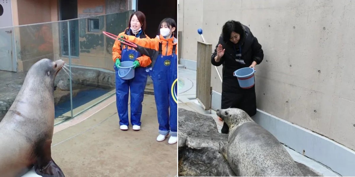 男鹿水族館GAO ゴマフアザラシへの餌やり体験