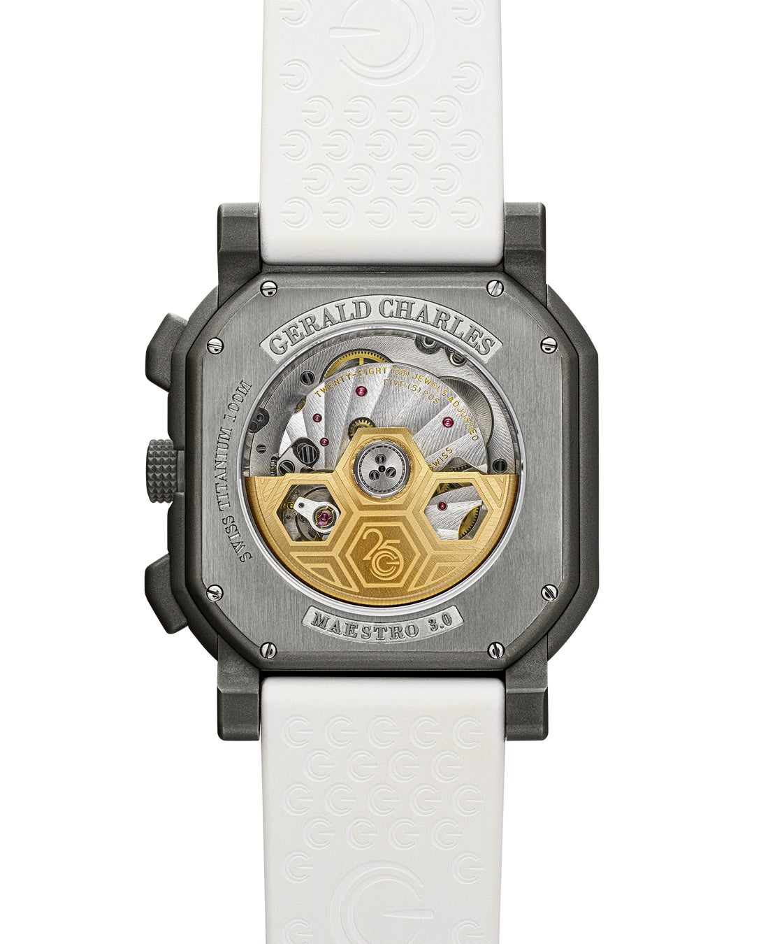 現在、ジュネーブのアトリエにあるジェラルド・チャールズ・ミュージアムに展示されているオリジナルのGC33クロノグラフからインスピレーションを得たマエストロ3.0クロノグラフは、スイス時計製造の豊かな伝統と現代の技術的進歩をシームレスに融合させ、見事に生まれ変わりました。
