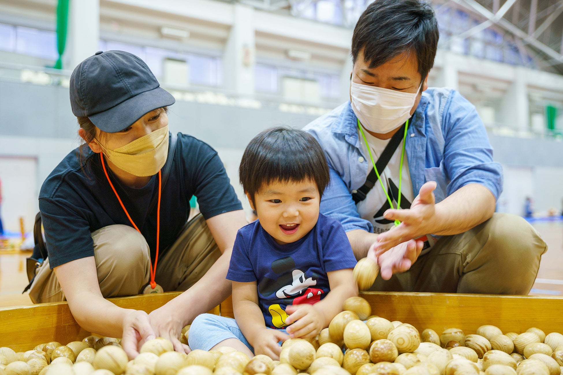「木育キャラバン」は、東京おもちゃ美術館が厳選した世界中の木のおもちゃ300点以上が大集合する、赤ちゃんから大人まで誰もが楽しめる体験型イベントです。会場では、木のたまごプールなど遊びの種類ごとにブースが分けられ、養成講座を受講したおもちゃ学芸員が遊び方を教えてくれます。