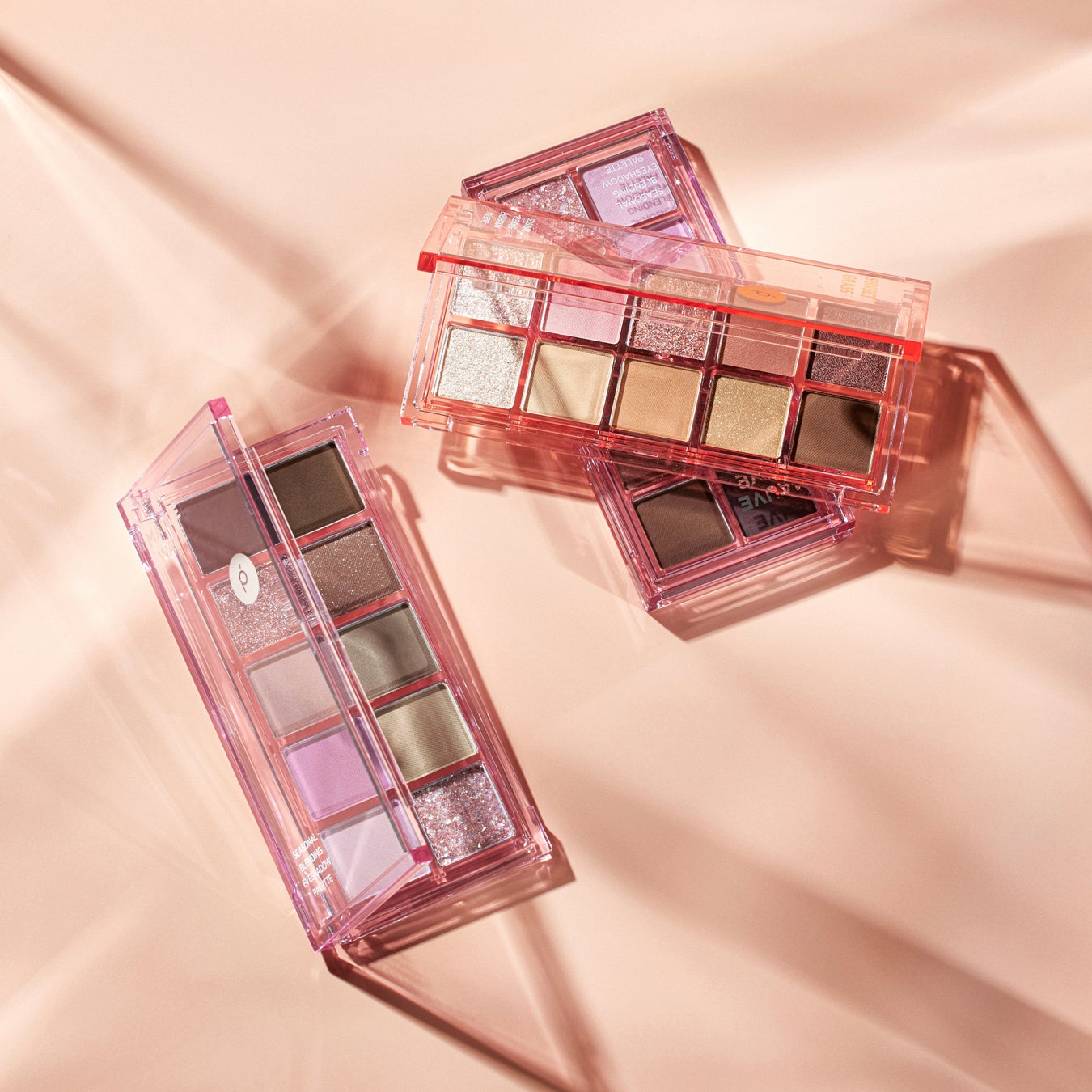 粉飛びやムラなくすっきり重ねられる陰影カラーから、多彩なグリッターで構成されたバリエーション豊かなパレット。