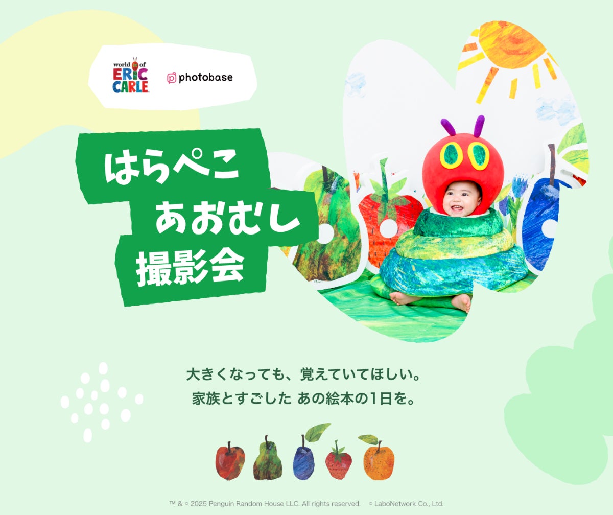 株式会社ラボネットワーク(本社:東京都北区、代表取締役社長:田中祐亮)は、0~2歳の赤ちゃん・キッズを対象とした撮影会サービス「photobase(フォトベース)」にて、世界中で愛される絵本『はらぺこあおむし』(作:エリック・カール)との公式コラボ撮影会を開催いたします。撮影申込みは2025年6月25日(水)より開始予定です。