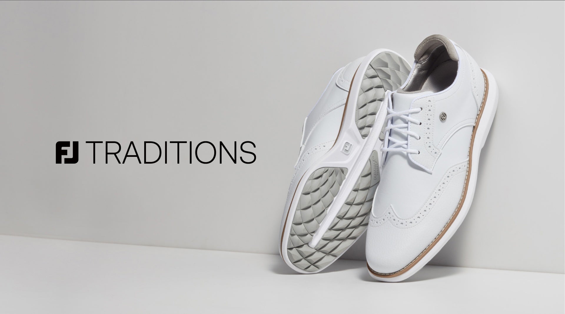 フットジョイから軽快さを兼ね備えたパフォーマンススパイクレス「Traditions」のウィメンズにウィングチップの新モデルが登場