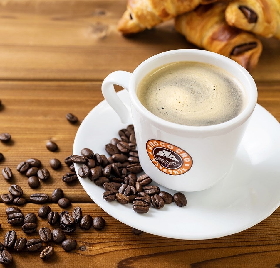 サンマルクカフェのコーヒーは、お客様からオーダーをいただいてから豆を挽いて蒸らし抽出する方式で、セルフサービススタイルのショップではサンマルクカフェが初めて導入いたしました。また、日本人の好みを意識して、コクと酸味が強いホテルタイプに仕上げております。