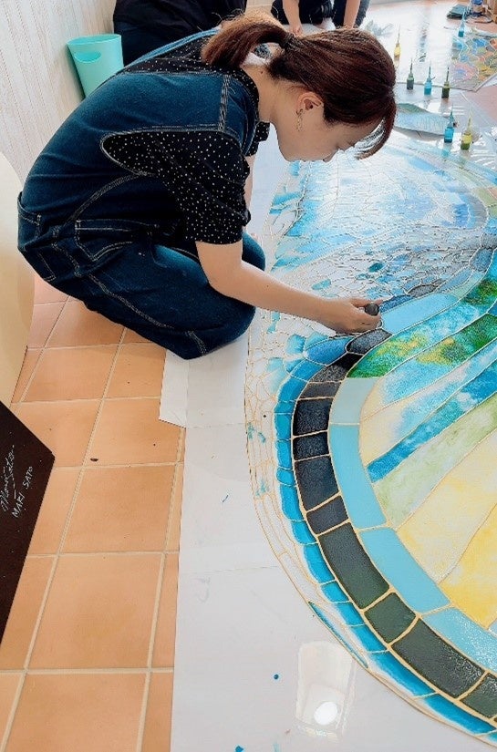 多くの材料が廃材から作られたECOなディンプルアートは、環境に優しいだけでなく、自然光でキラキラと輝くステンドグラスのような美しいアートです。この作品が、海の豊かさを守り、環境に配慮した行動を促す一助となれば幸いです。