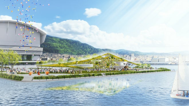 「神戸アリーナプロジェクト」を運営企業する株式会社One Bright KOBE(住所:兵庫県神戸市、代表取締役社長 渋谷 順)は、神戸ウォーターフロントエリアに阪神淡路大震災30年目の節目となる2025年4月に、日本初・270度海に囲まれた水辺のアリーナ「GLION ARENA KOBE(ジーライオンアリーナ神戸)」と屋外パークエリア「TOTTEI PARK」の一体運営により、日常的ににぎわいを生みだす神戸の最先端エンターテインメントエリアの創出を目指しています。