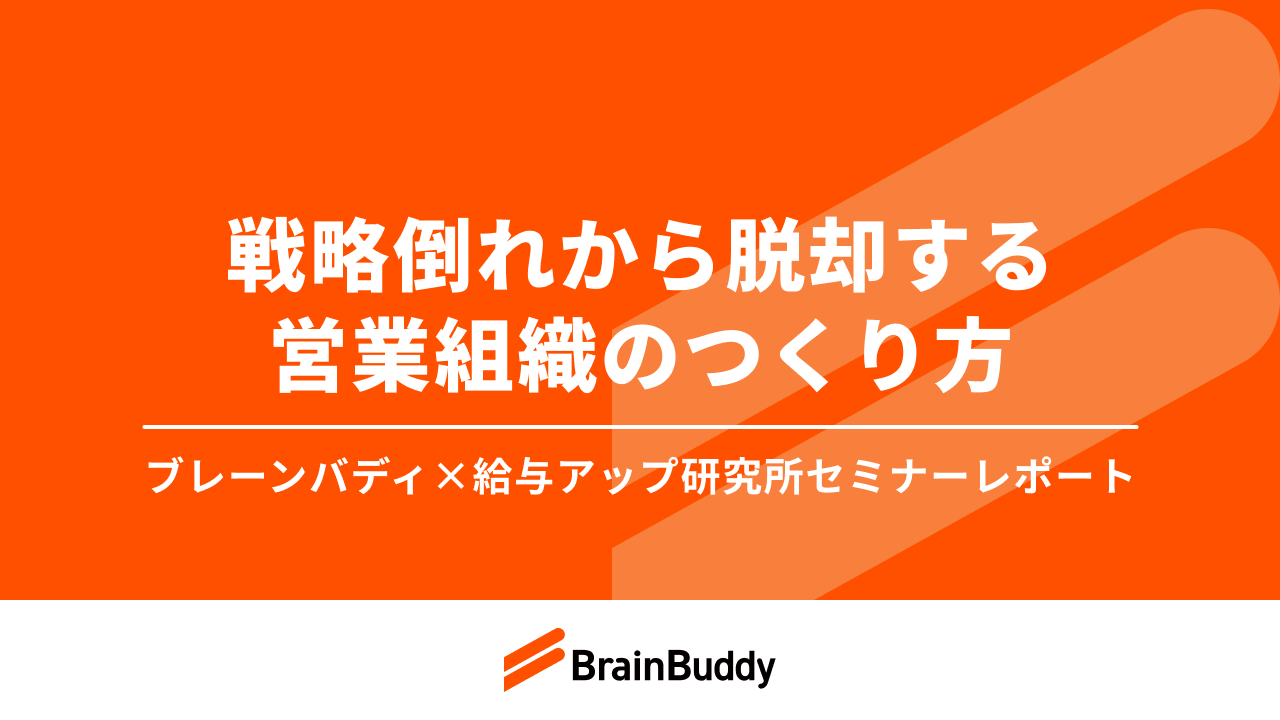 「一人でも多く、パフォーマンスを発揮できる機会を提供する」をミッションに掲げ、営業支援を中心とした事業を手がける株式会社ブレーンバディ(本社:東京都港区、代表取締役:大矢剛大、以下ブレーンバディ)は、業務提携を結んだ給与アップ研究所と「営業改革の設計図と実行チームのつくり方」と題し、セミナーを共催いたしました。セミナーレポートとして、当日取り上げた内容を一部お届けします。