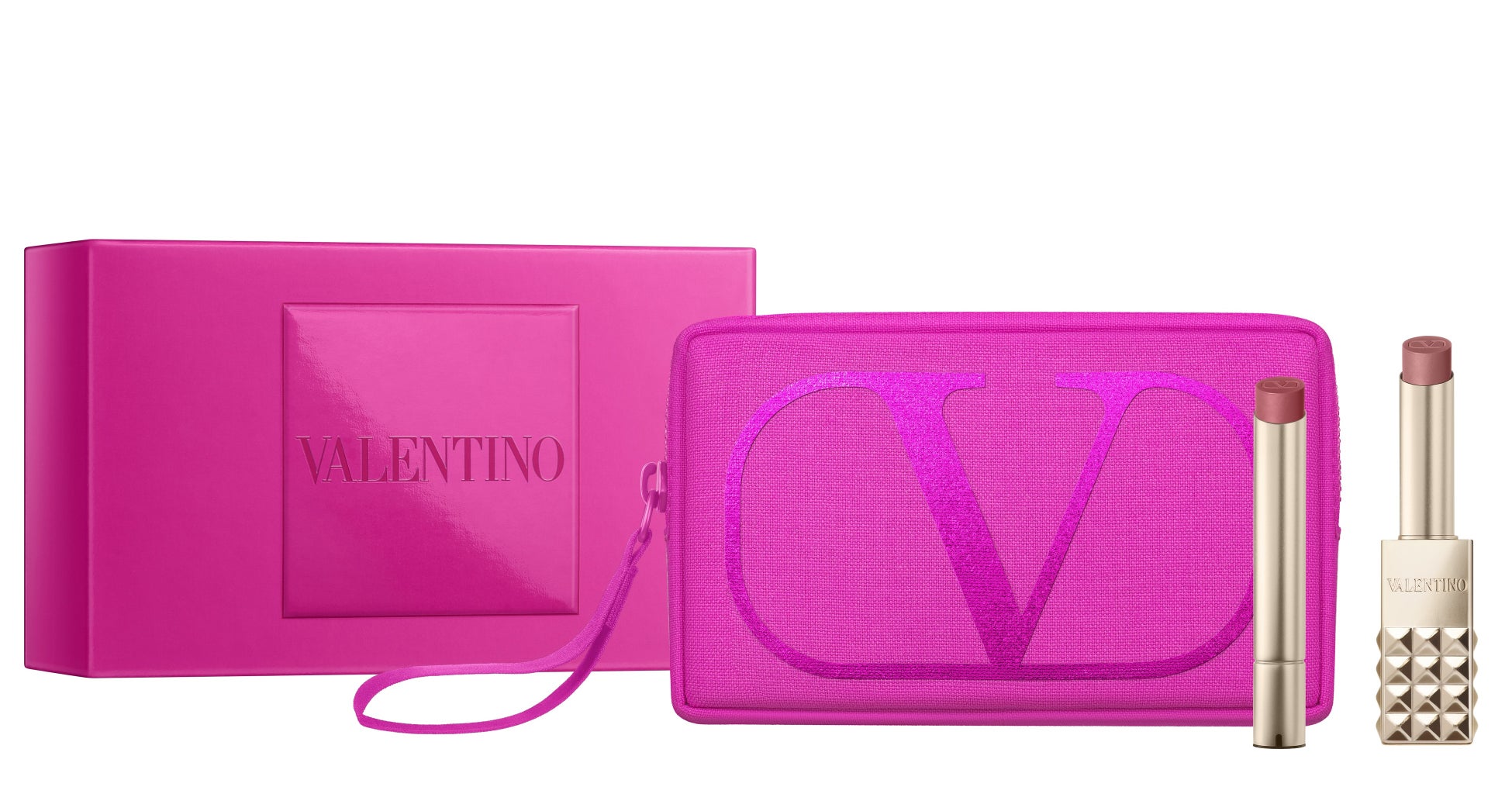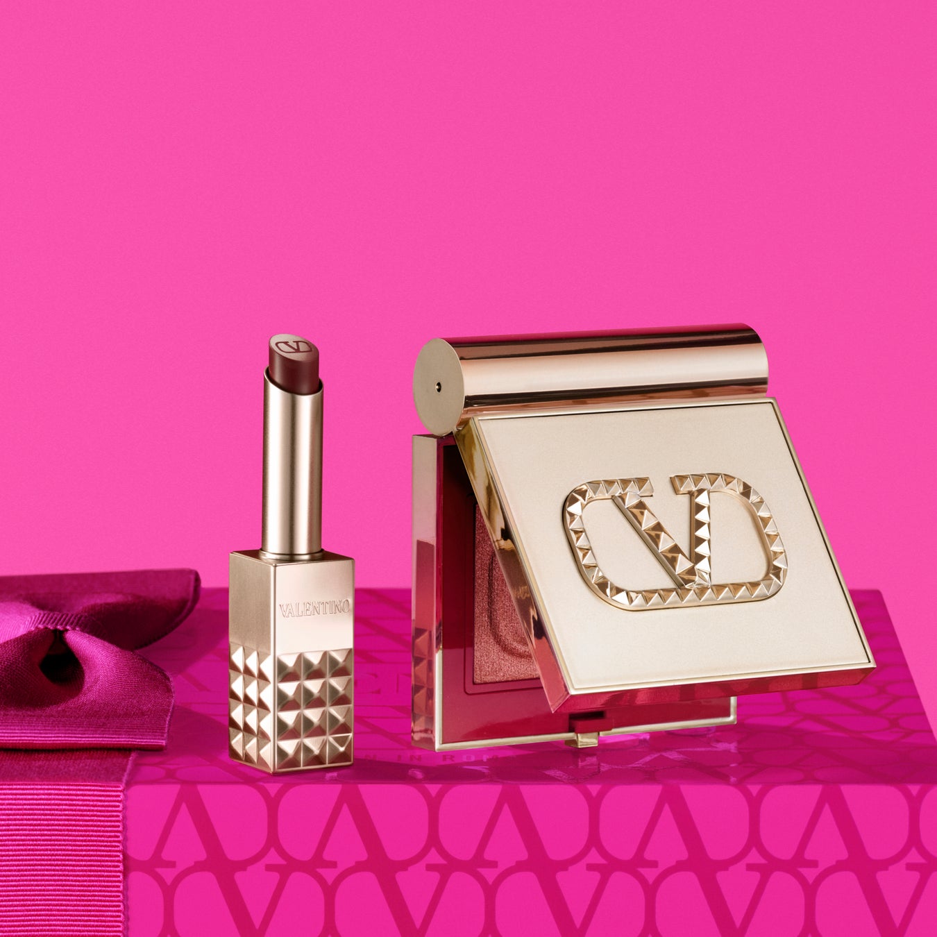 象徴的なスタッズで覆われたパッケージ。しっとり潤うクリーミーマット。差が付くカラー。ヴァレンティノ ビューティのアイコン的リップスティックを、特別なセットで。
