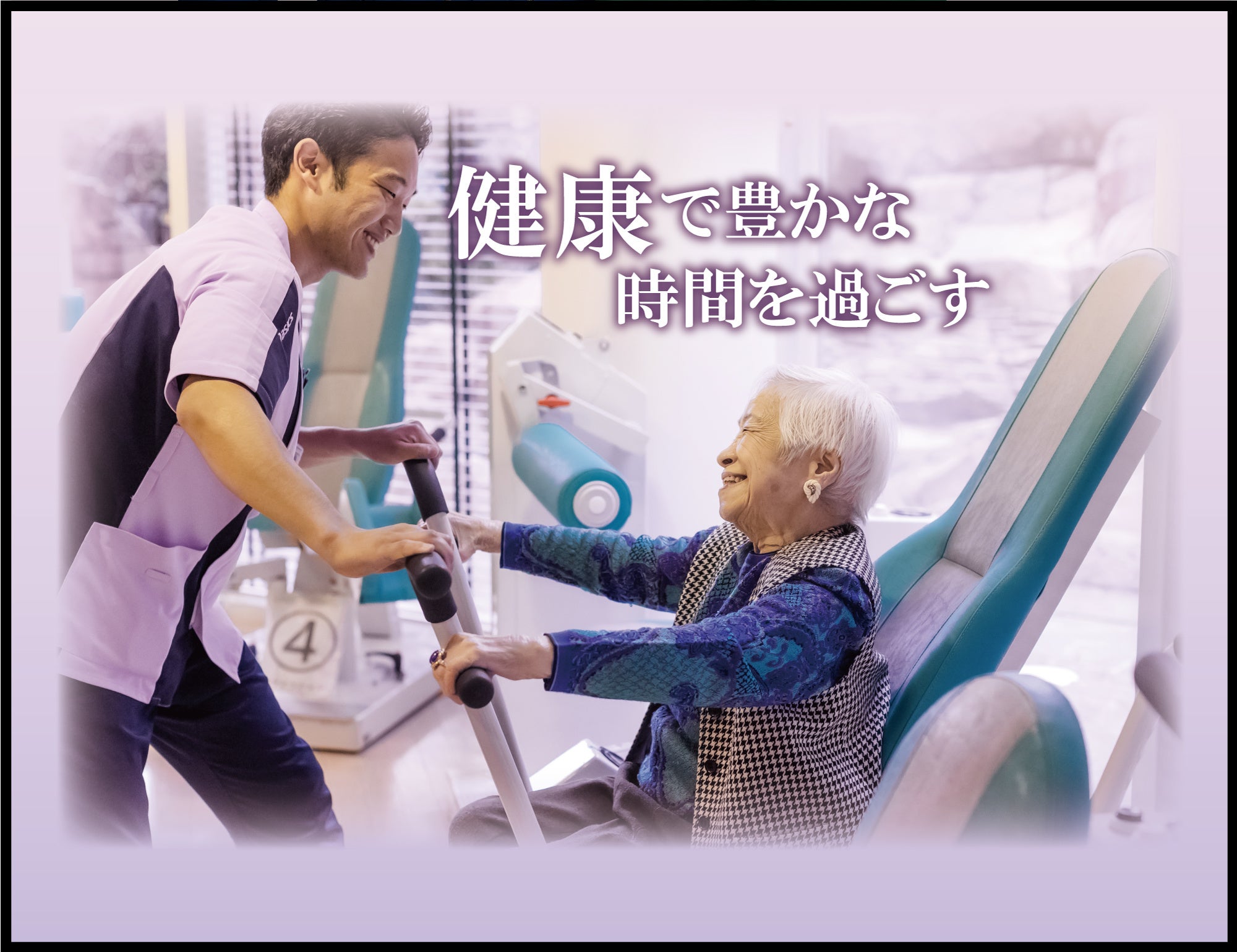 介護予防の視点からリハビリテーションにも力をいれており冒険家の三浦雄一郎氏が運営するミウラドルフィンズと「エイジレストレーニング」を共同開発し、機能維持改善プログラムや急性期・回復プログラム等、専門のヘルスケアマネジャーがオーダーメイドのメニューを作成し実施してまいります。