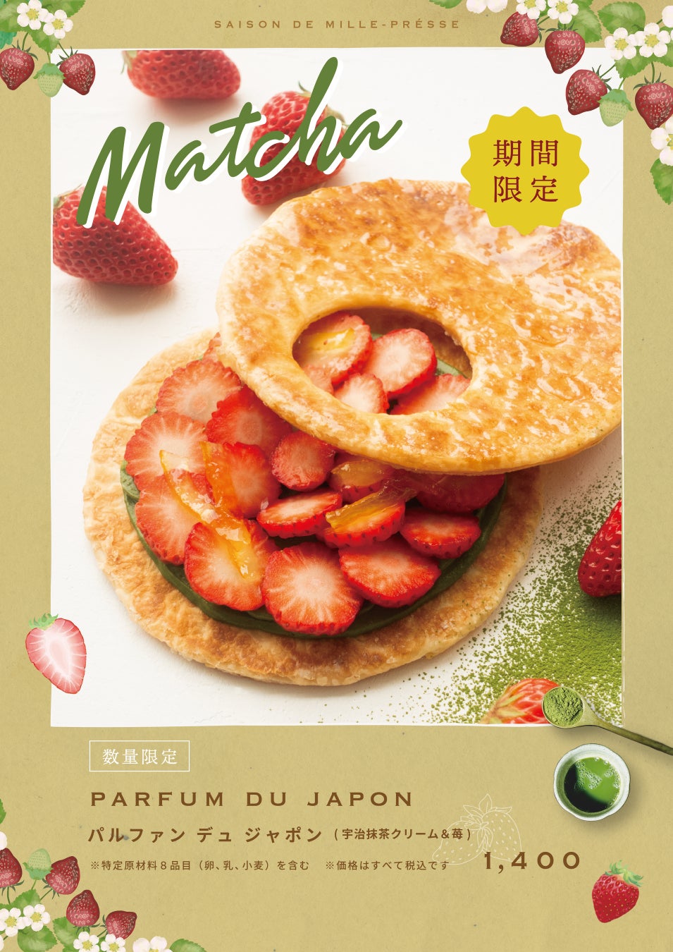さらに今回は、柚子をアクセントに加えた ミルプレッセ! 濃厚な宇治抹茶クリームにたっぷりの苺、そして柚子の華やかな香りが織りなす絶妙なハーモニーをお愉しみください。