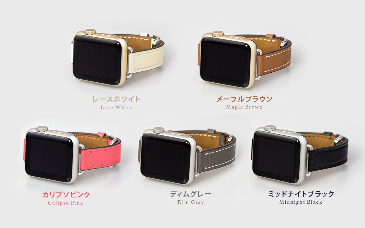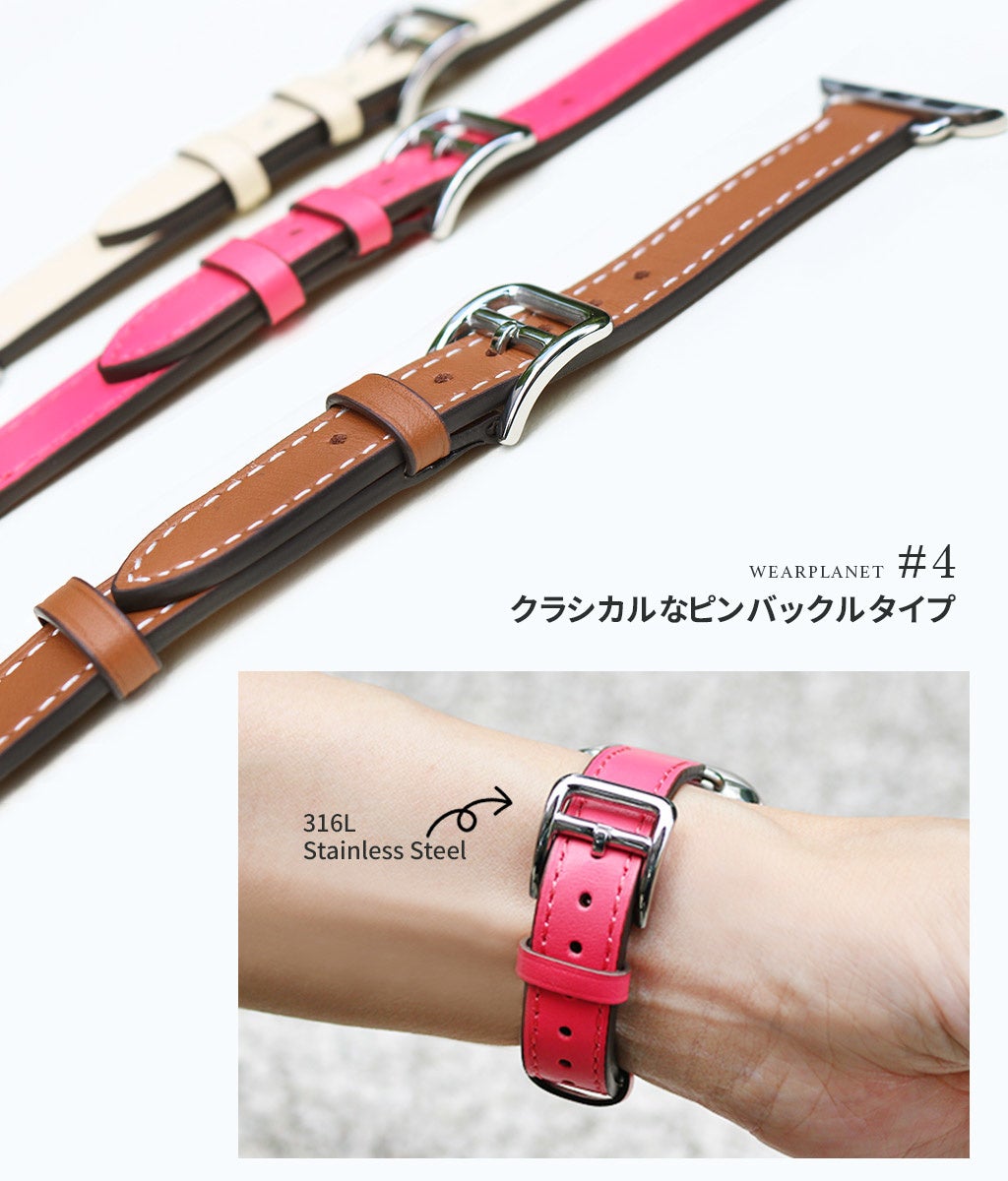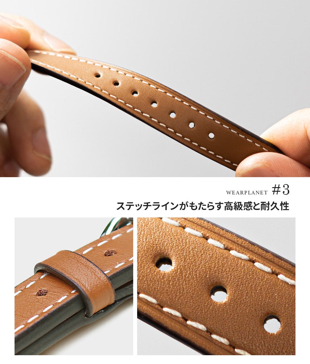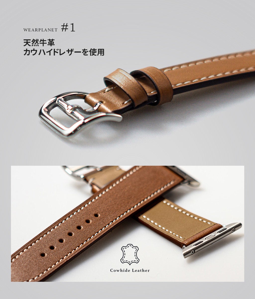 本製品は、丈夫で柔らかいカウハイドレザーを全面に使用し、スリムなのに耐久性にも優れたApple Watch専用レザーバンドです。