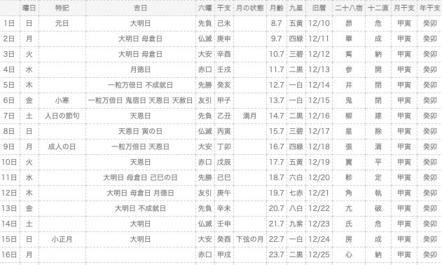 - 月徳日:基本的に万事に向く吉日。月の幸運を守護する神がいる日とされる。