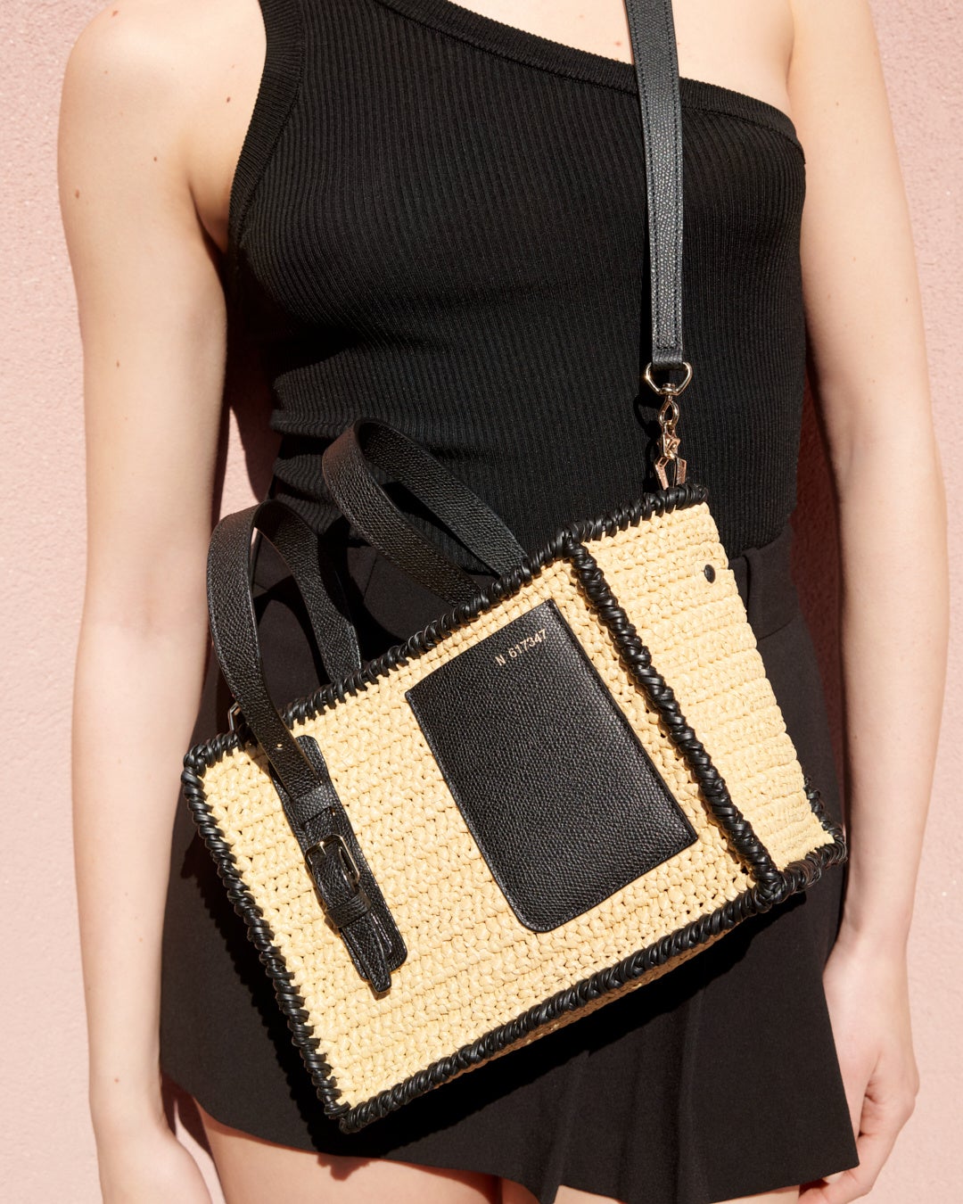ラフィアのマイクロ バケットは、コンパクトなサイズで夏の日のお出かけに。トートは優れた収納力で、リネンの天蓋の下でゆっくりと過ごす午後のひとときから、夕方のゴールデンタイムまで、あなたのそばに。