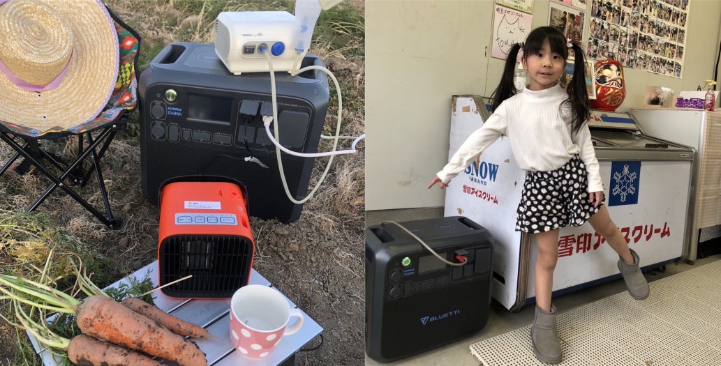 れいちゃんのアイス屋さんは、アイスクリームの商品特性から、かねてより停電への対応を課題とされていました。現在は、日中や夜間にアイスクリームを保管する冷蔵庫を離れる際にはAC200MAX+B230を接続して給電することで、停電の心配なく、ライフワークに取り組まれています。また、冬季の農作業時のヒーターの電源、娘さんの喘息の発作時の吸入器へのご使用にも役立っているとお喜びの声をいただいています。