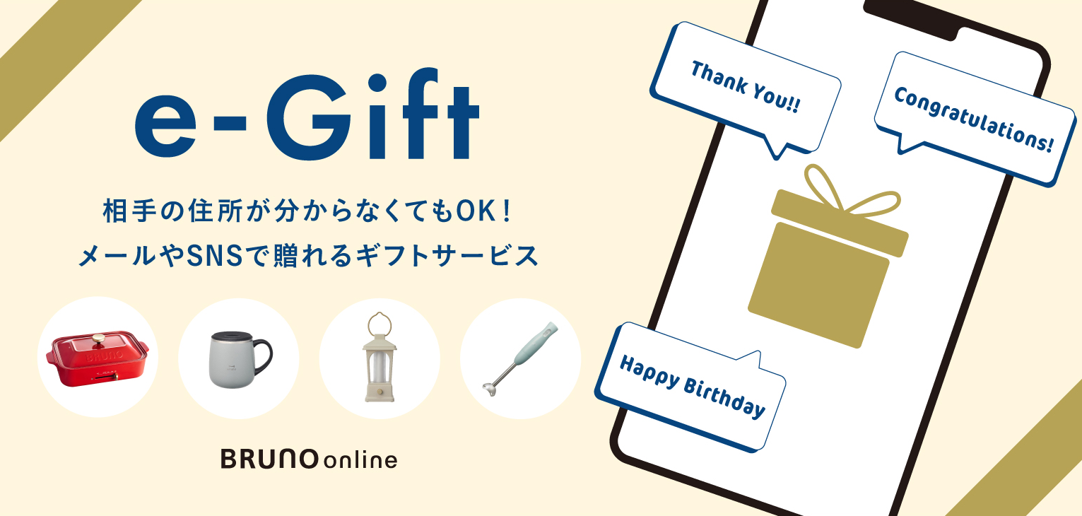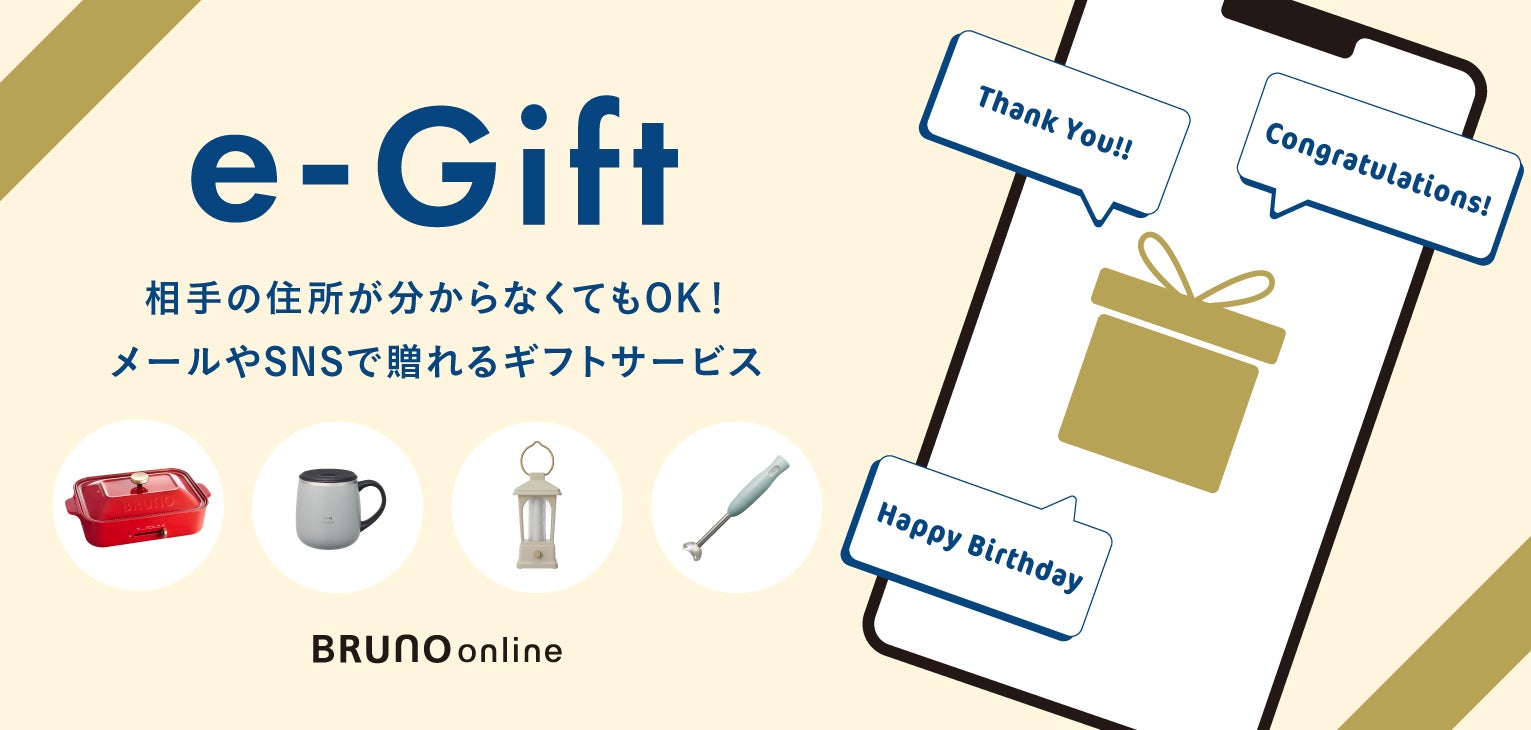 BRUNO onlineで取り扱いのあるBRUNO・MILESTOのほとんどのアイテムがeギフトで贈れます。