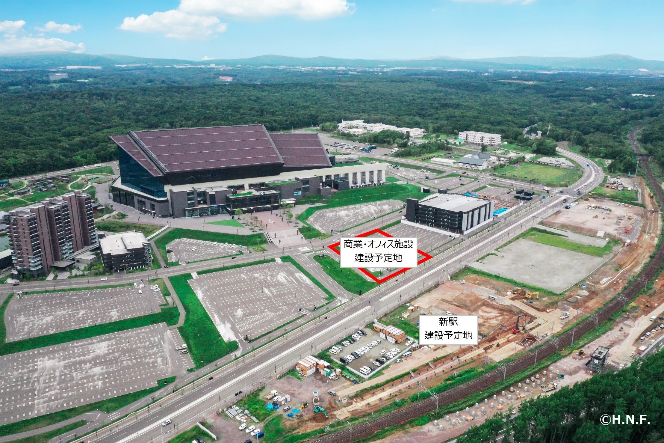 ESEは、当社、株式会社ファイターズ スポーツ&エンターテイメント、株式会社ディー・エヌ・エーの3社によって2023年に設立され、スポーツ・エンターテイメントを核としたまちづくりを推進しています。ESEの開発第1弾となる本施設の計画地は、Fビレッジ内の球場「ES CON FIELD HOKKAIDO」と2028年に開業が予定されているJR千歳線新駅の間に位置します。新駅開業により札幌や新千歳空港から電車での交通利便性が向上し、また同年に北海道医療大学の移転計画があることにより、Fビレッジ周辺への来場者・滞在者の増加が見込まれます。