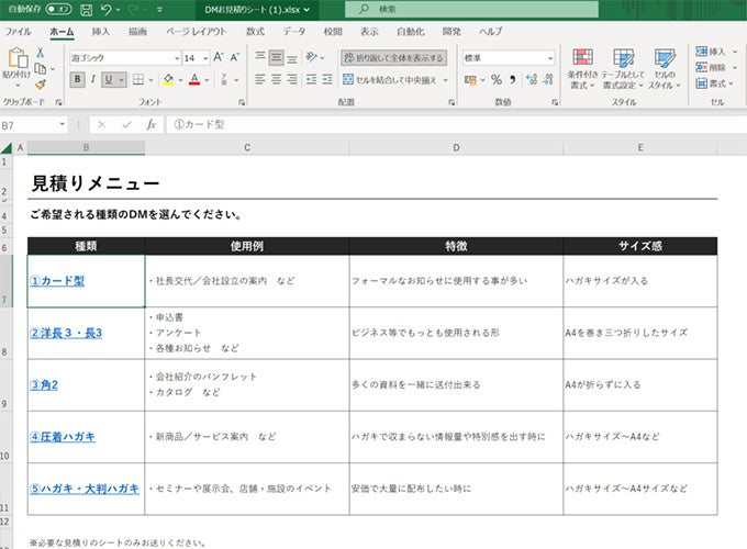 DMの見積りを取る際にご活用いただけるテンプレート(EXCEL形式)も配布しております。