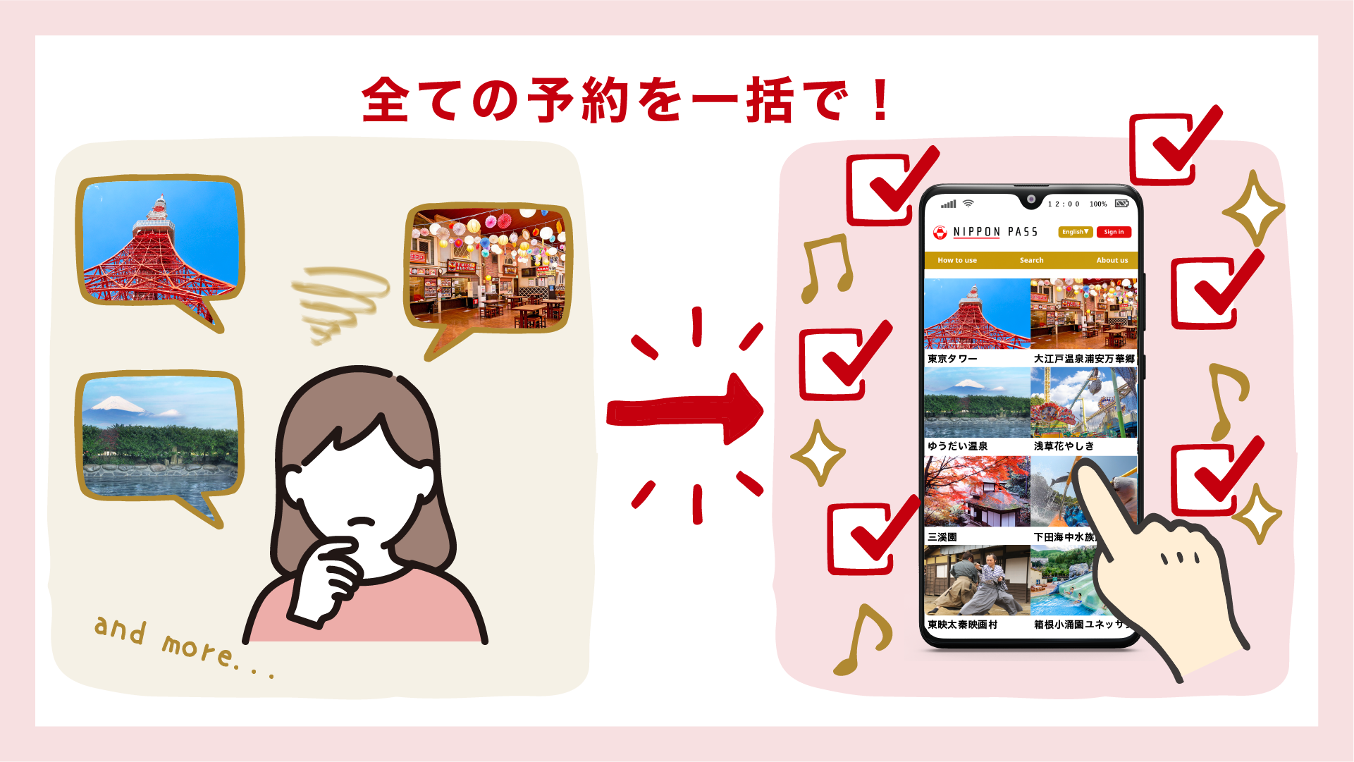 NIPPON PASS内にてパスの購入から施設への入場まで全て簡潔に行えます。