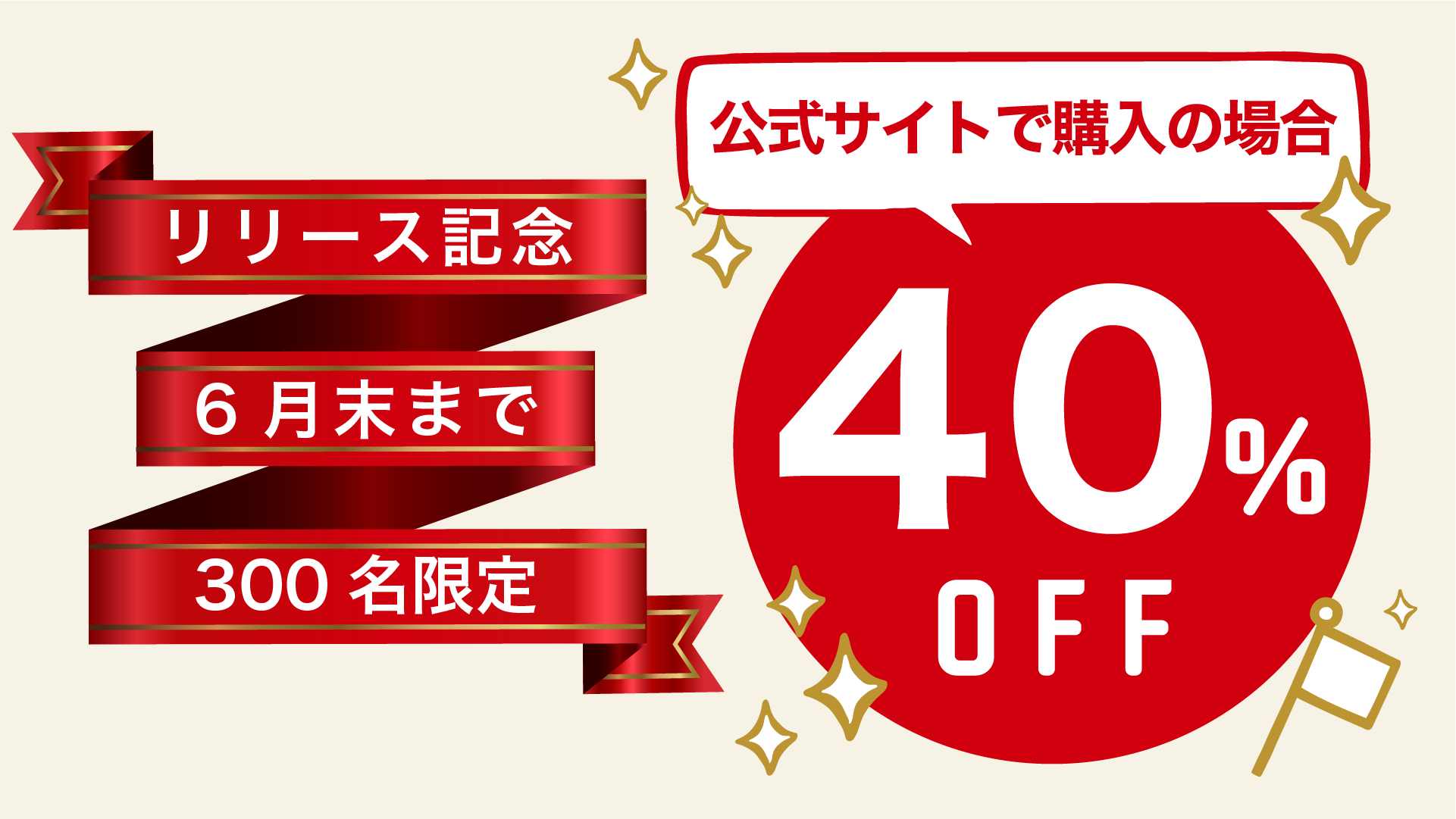 リリースを記念して300名限定で40%オフで提供いたします。(6月末まで)
