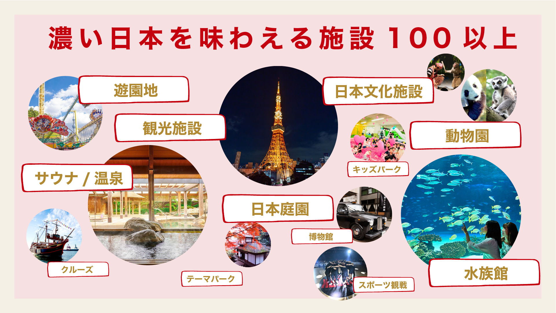 サービス内容 :日本国内100施設以上のエンタメ施設を利用できるインバウンド周遊パス