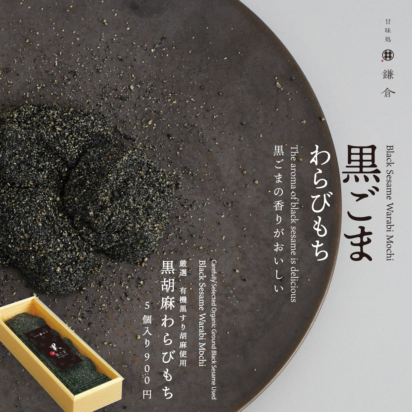 【甘味処鎌倉】ごまの旨みたっぷりでわらびもちの甘さを最高に引き出す、有機黒すりごまを使用した『黒胡麻わらびもち』が新発売!