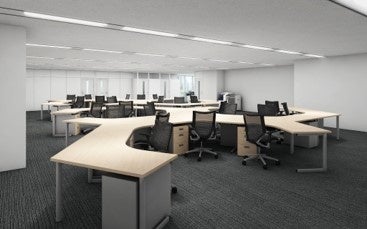 執務室は、ベンゼン型レイアウトを採用し、チーム単位でコミュニケーションが取りやすいレイアウトにしました。