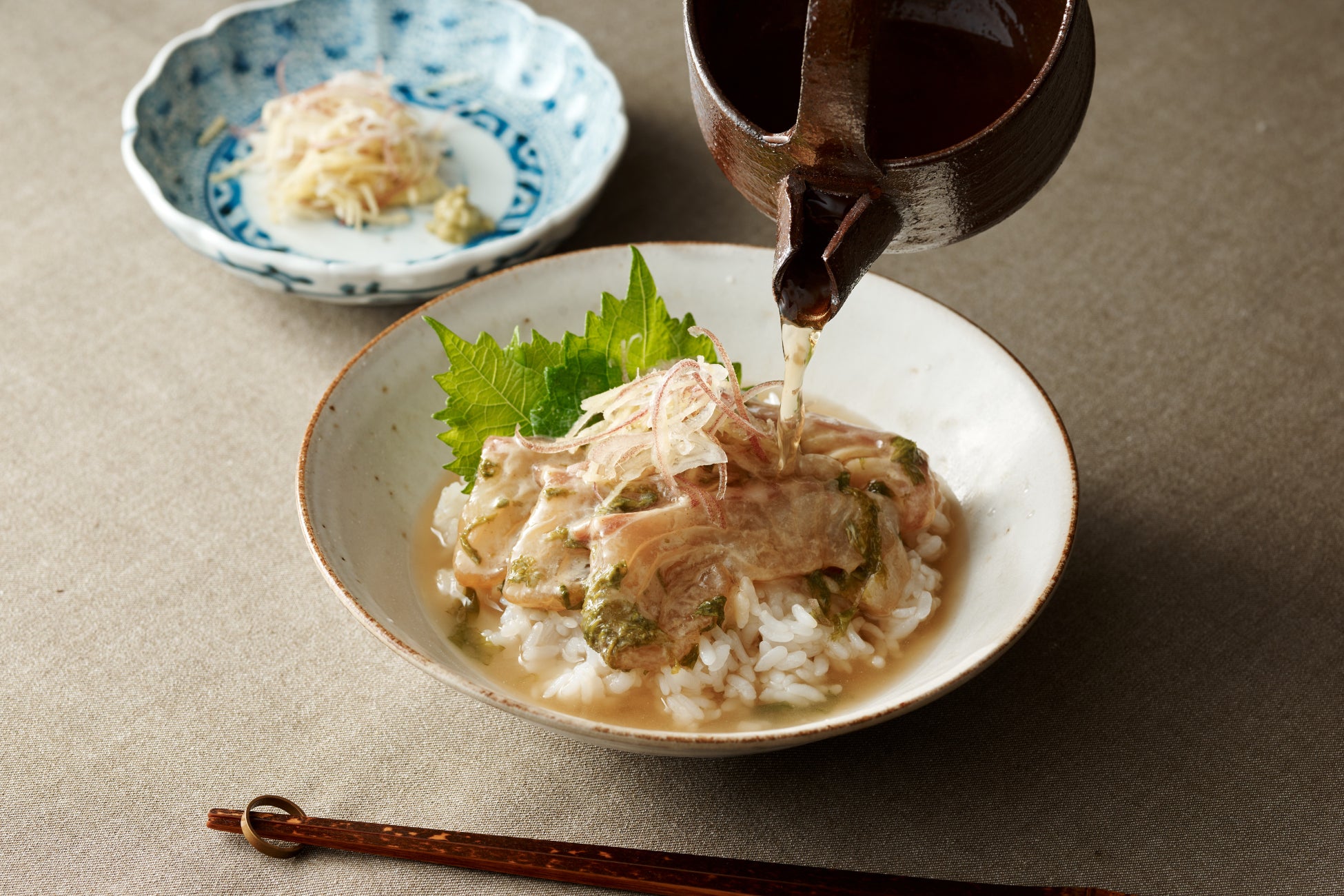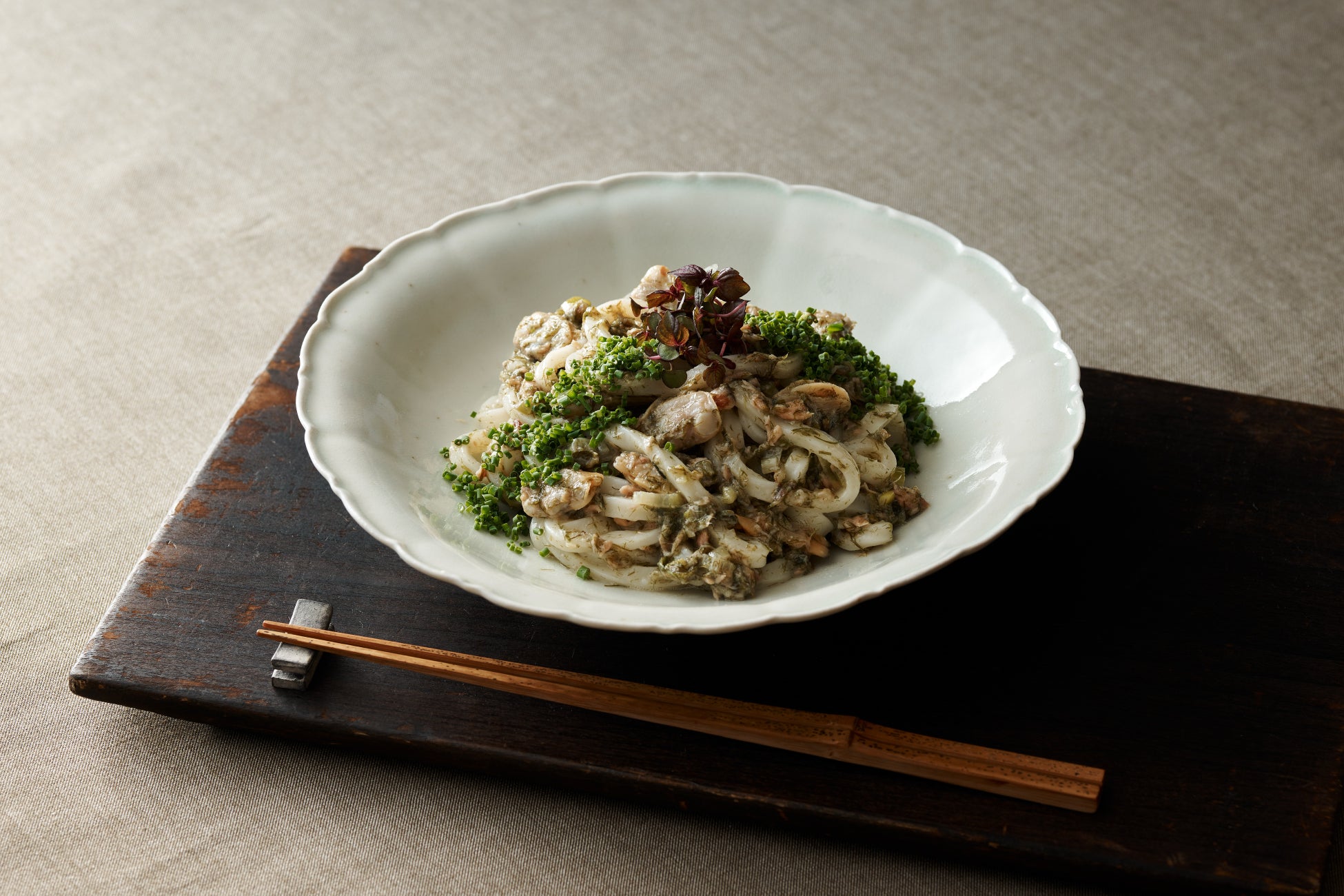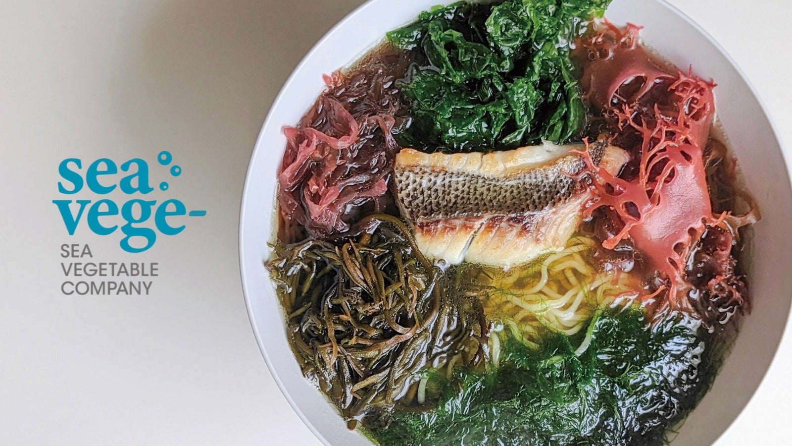 すし作家・海藻料理研究家として活躍する、シーベジタブルのパートナーシェフ・岡田大介氏が監修した「海藻と旬魚のラーメン」。実はスープものと相性がよい海藻類。ラーメンのスープは、刺身で食べられる鮮度の魚のアラや頭を焼いて、昆布とネギ、「青のりしょうゆ」と塩のみで味を整えています。最高級品種と言われる生のすじ青のりを発酵させて作る「青のりしょうゆ」は、シーベジタブルから生まれたブランドRe-seaweedが開発した、これまで世界に存在しなかったまったく新しい海藻発酵調味料です。