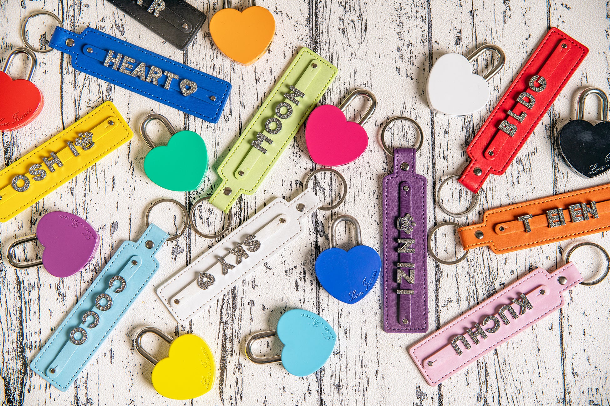 自分の名前はもちろん、推しや大切な人の名前を入れたハートロックとお名前キーリングを作ることができます。