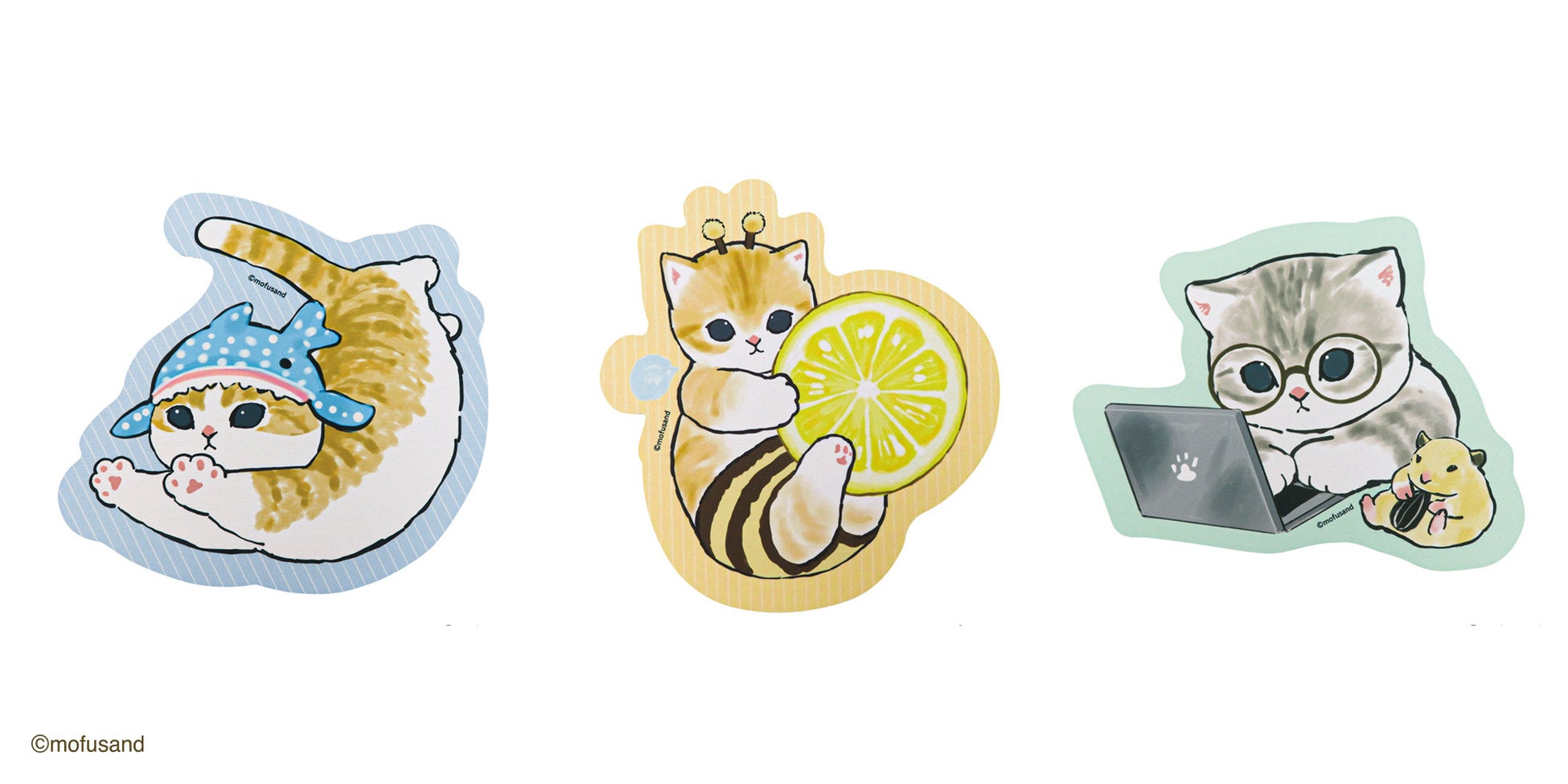 ◆ダイカットマウスパッド mofusand (左から)さめ とびはね/はち/ぱそこん 各968円(税込)